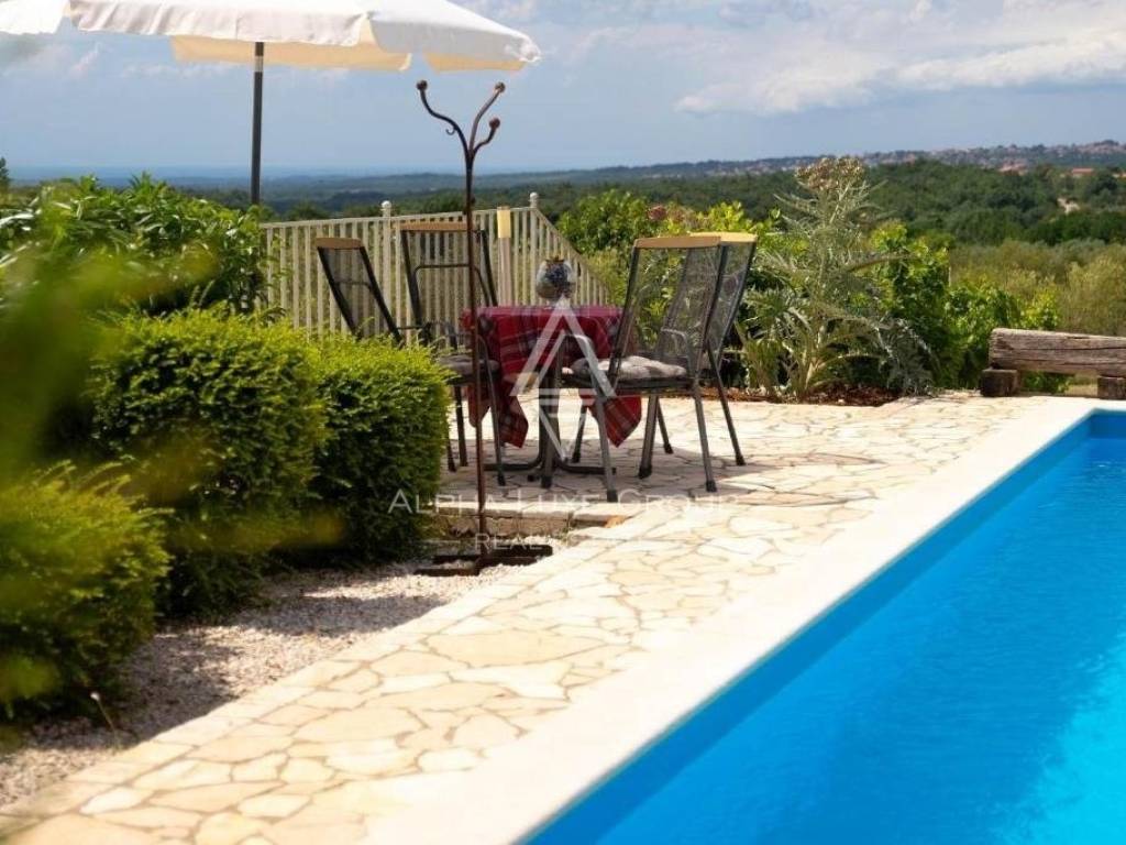 Istria, Višnjan: Panoramic view villa with pool