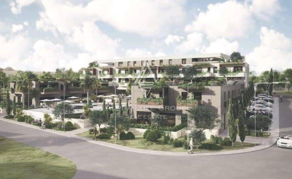 ALPHA LUXE GROUP is selling a new apartment on the ground floor of a luxury building, 48.85 m2 with an attached garage and a shared pool. The apartment has a living room, kitchen, dining room, bedroom and bathroom. In the living room there is a large automatic sliding window that provides natural light. It has built-in underfloor heating in the bathrooms and installed inverter air conditioners for hot summer days.
