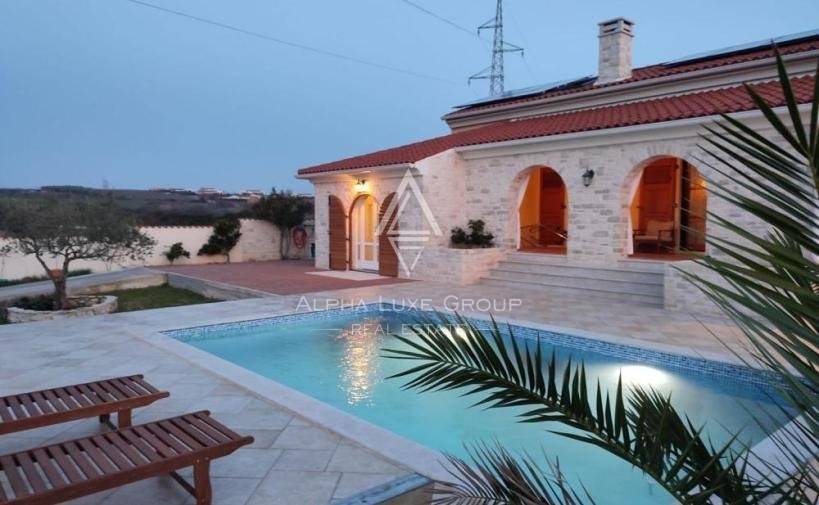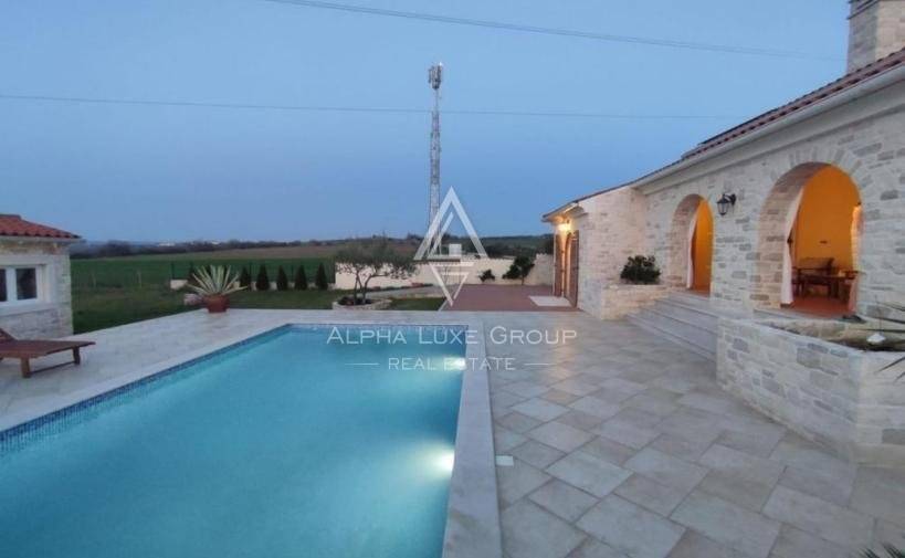 The highest quality materials have been used in constructing this one-story home, and its charming style is adorned with Campanal stone and an acacia wood kitchen designed in Italy. All kitchen appliances are from Miele, and ceramics and sanitary ware are from Bosch.
