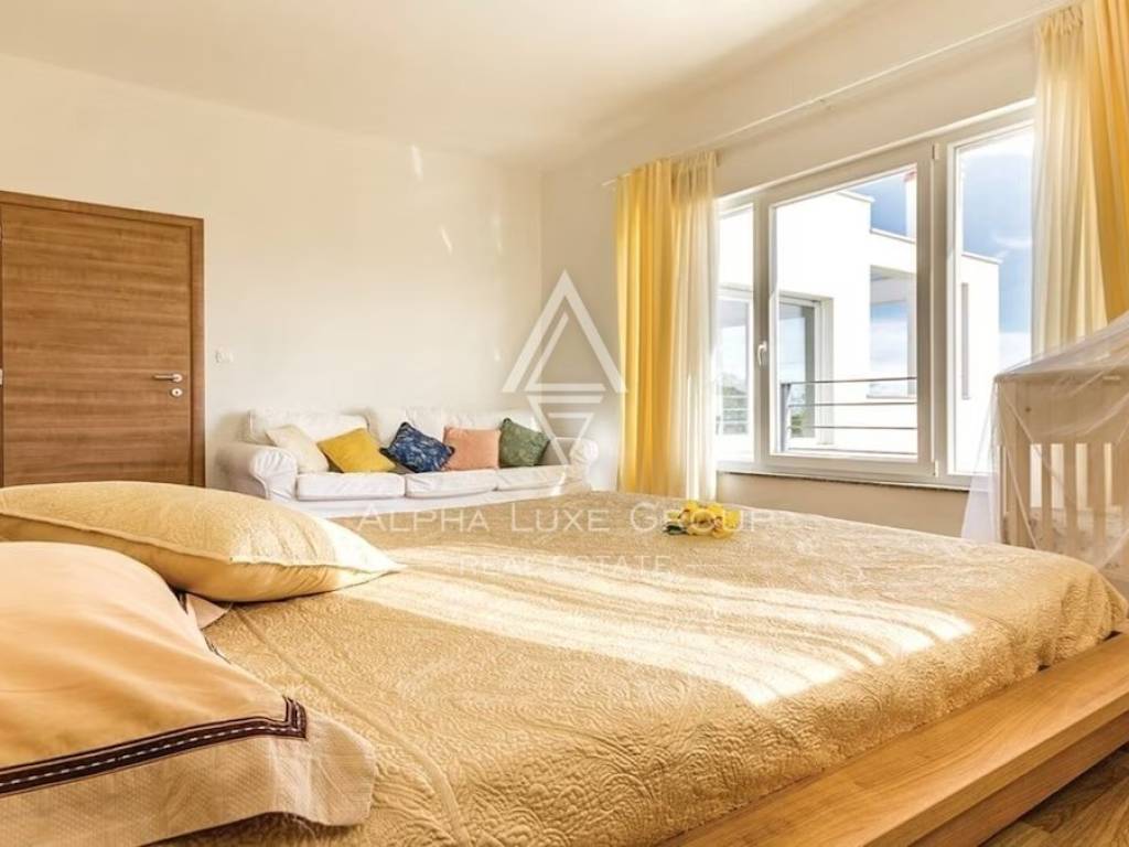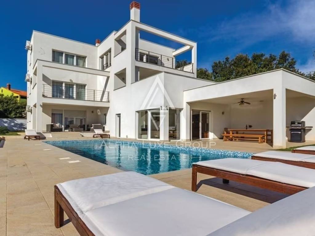This expansive villa, located in a peaceful Ližnjan settlement and just a stone's throw from pristine beaches, is now available for purchase. The villa is distinguished by its strategic location, exceptional craftsmanship, and contemporary design. Encompassing three elegantly furnished and well-equipped floors, it provides ample living space. The villa features five bedrooms, six bathrooms, an open-plan living area combining the lounge, dining room, and kitchen, and extensive terraces offering breathtaking sea views.