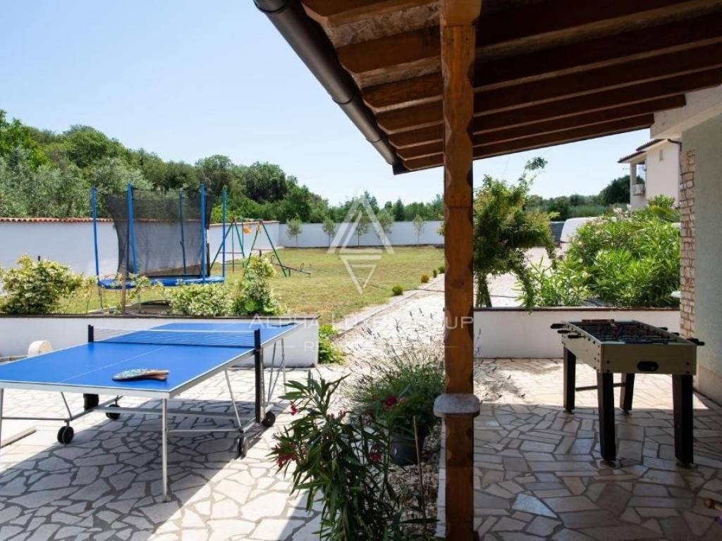 Nestled in the tranquil heart of Istria's Pomer, just 1.1 kilometers from the sea, this one-story holiday home offers a rare opportunity for investors. Pomer, a serene and reflective village, is steeped in history, once known as Pomoerium by the Romans who cherished its natural beauty and built their opulent villas and harbors here.