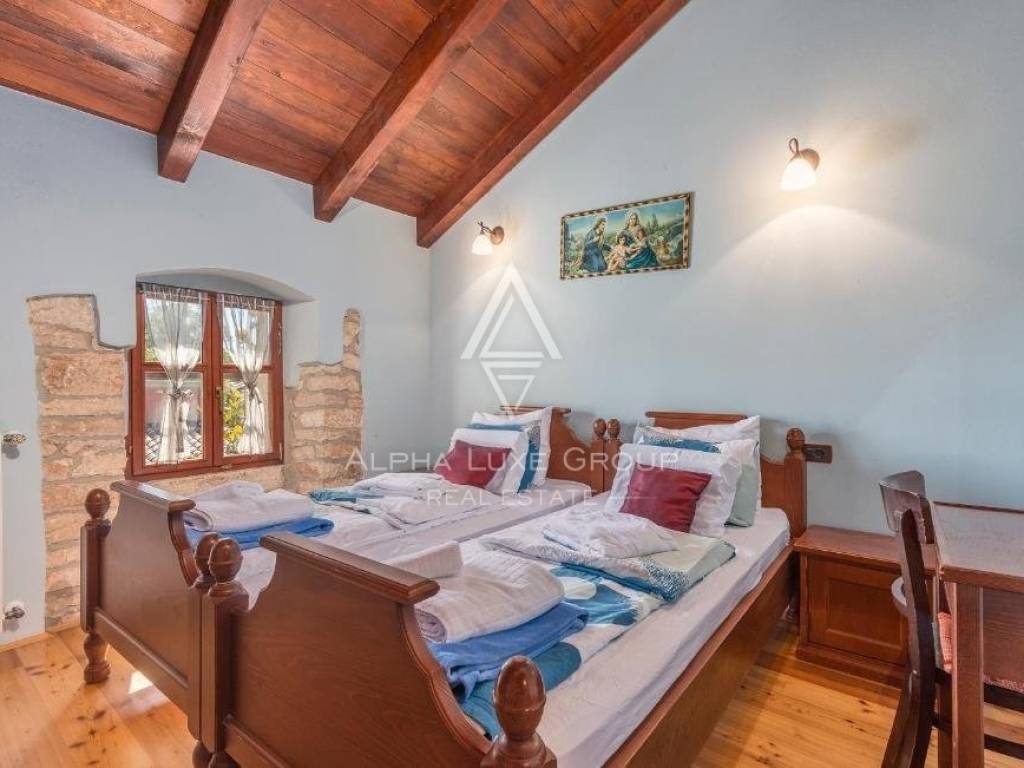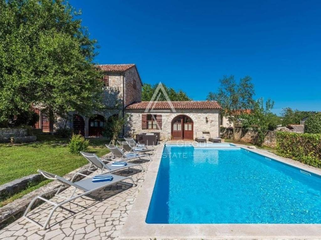 For sale, an authentic Istrian stone house built in 1709 but completely renovated. The house is located in central Istria in a small village near Zminj, spreads over several buildings spread over two floors with a total area of 300 m2.