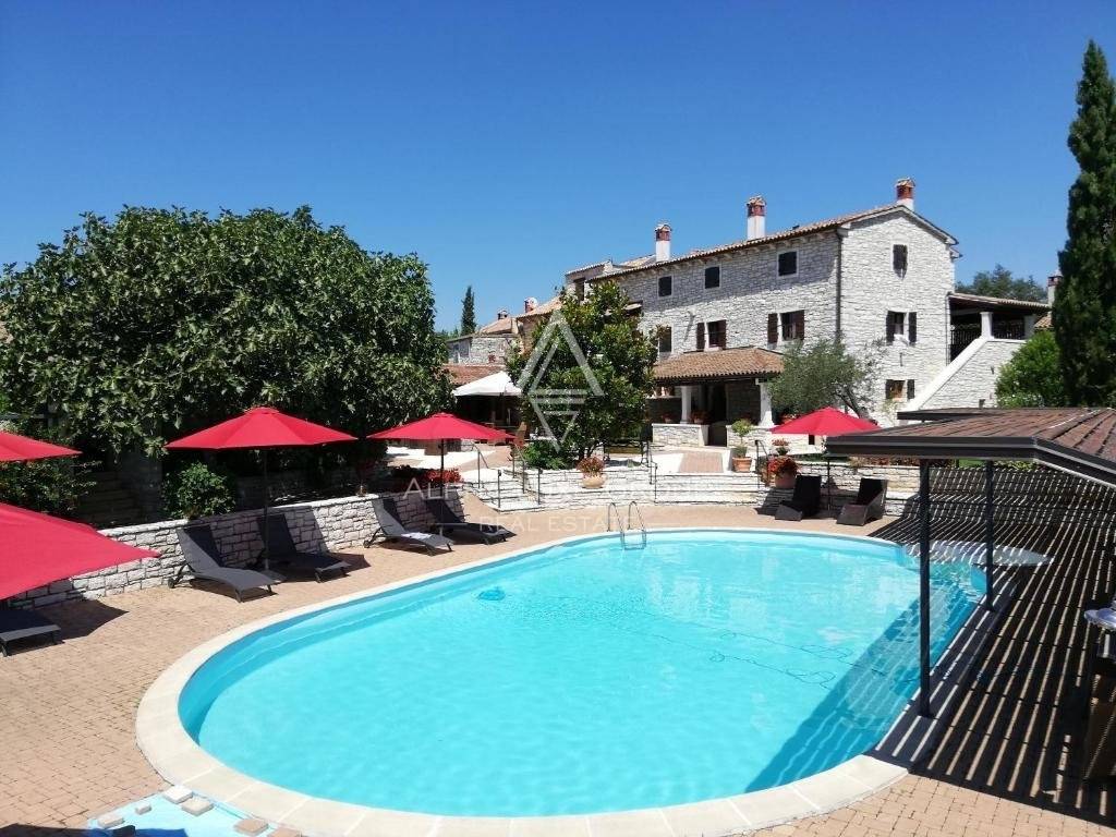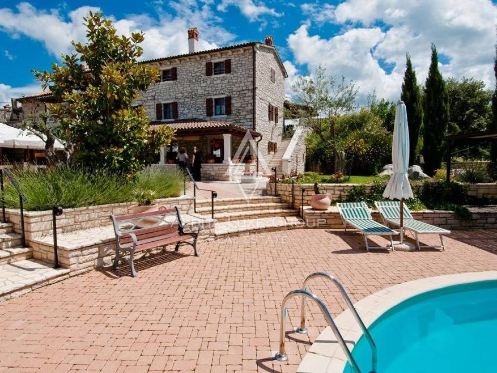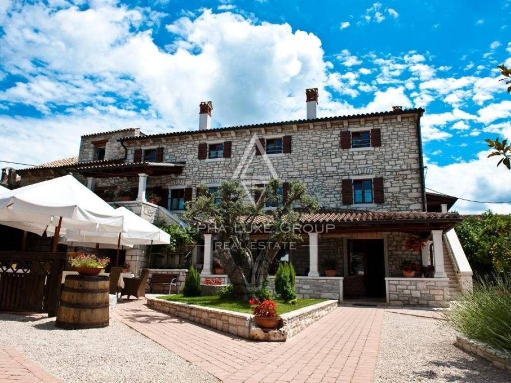 This stunning and romantic Istrian station is a fantastic business opportunity just 5 minutes from Rovinj. The stone mansion, which has been fully renovated in the Istrian spirit and comprises a total of 600m2 of living space and a smaller detached structure of 91m2, is situated on its 1858m2 of property area.