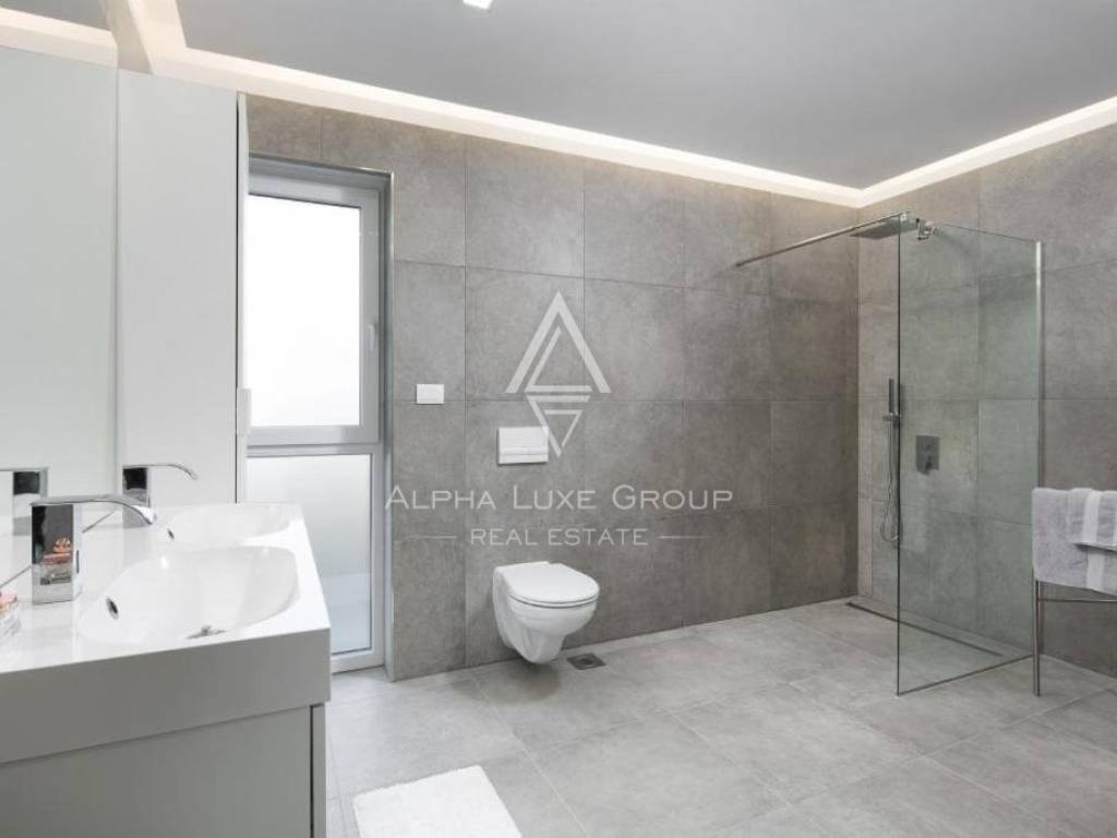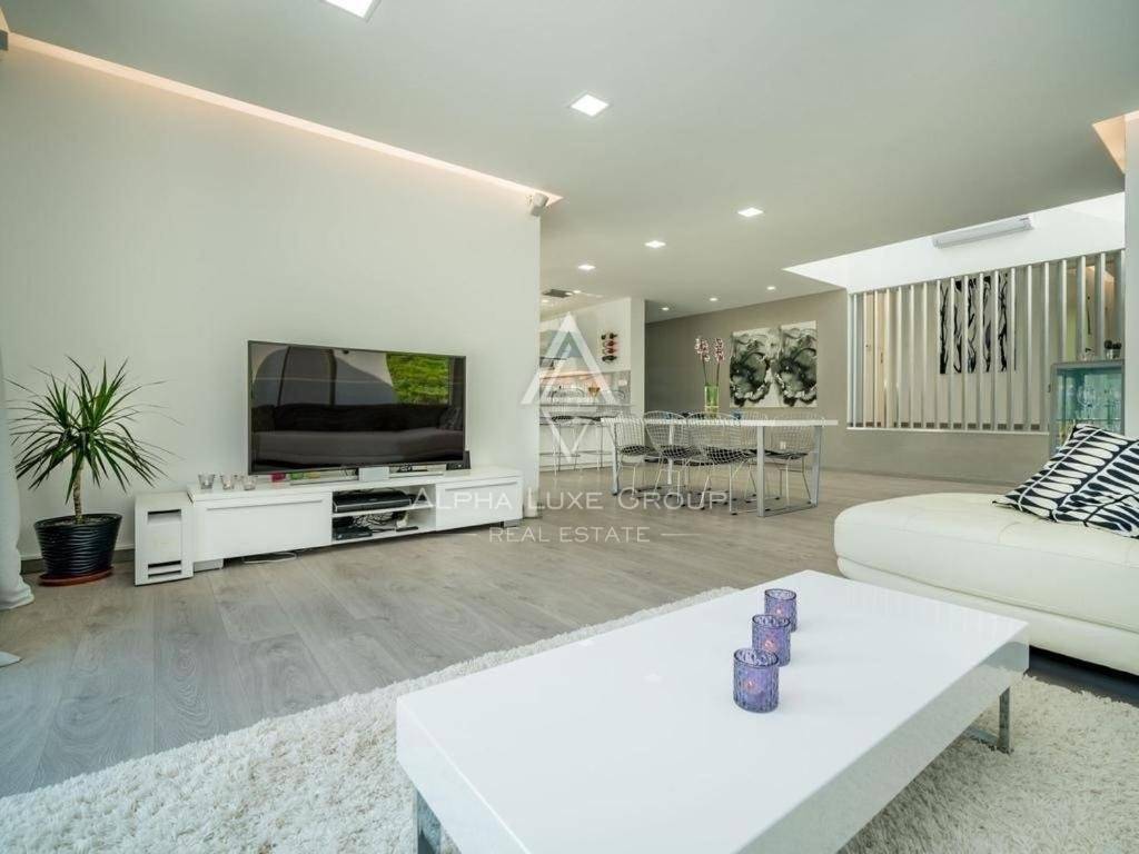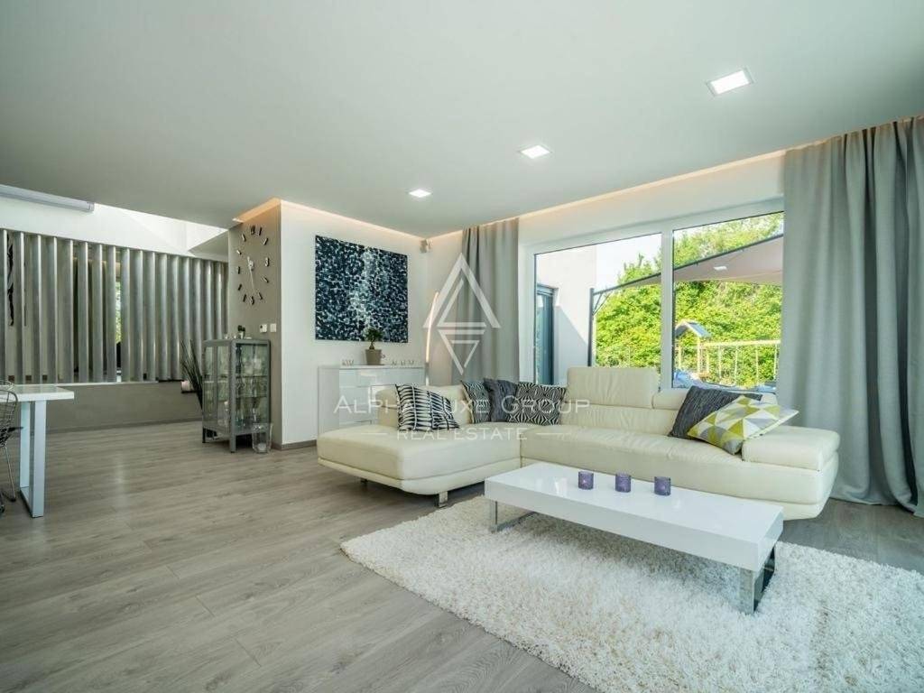 Superior design with a living area of 150 m2 and garden space of 500 m2, equipment and furniture of the villa, and the external appearance attract attention. Straight lines, neutral colors, and lots of glazed surfaces give the estate an elegant and modern look.
