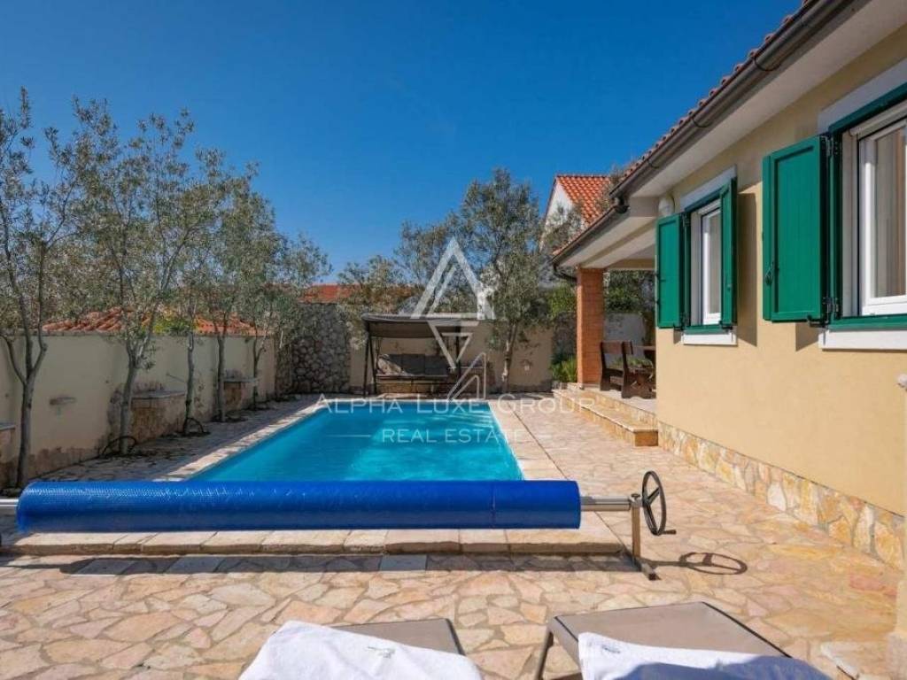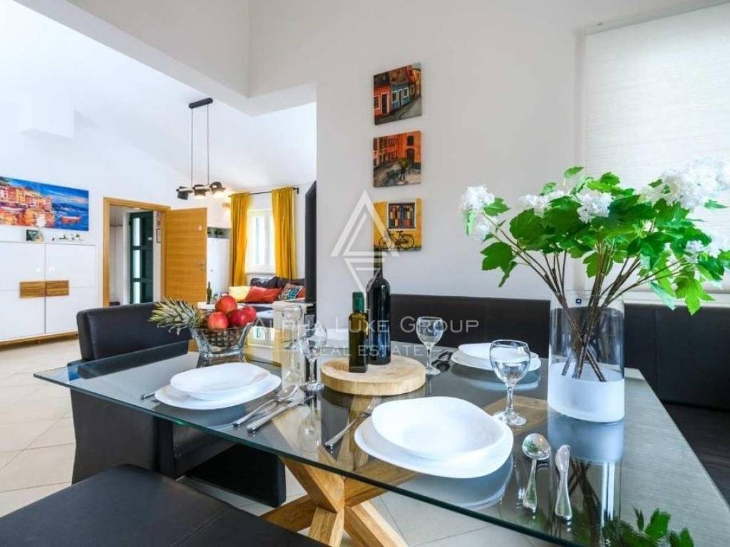 Nestled in the scenic Barbariga area in Vodnjan, Istria, this single-story family villa combines the allure of traditional Istrian architecture with modern living amenities. Just 700 meters from pristine rocky beaches, the villa sits in a tranquil neighborhood, perfect for those seeking a serene lifestyle.