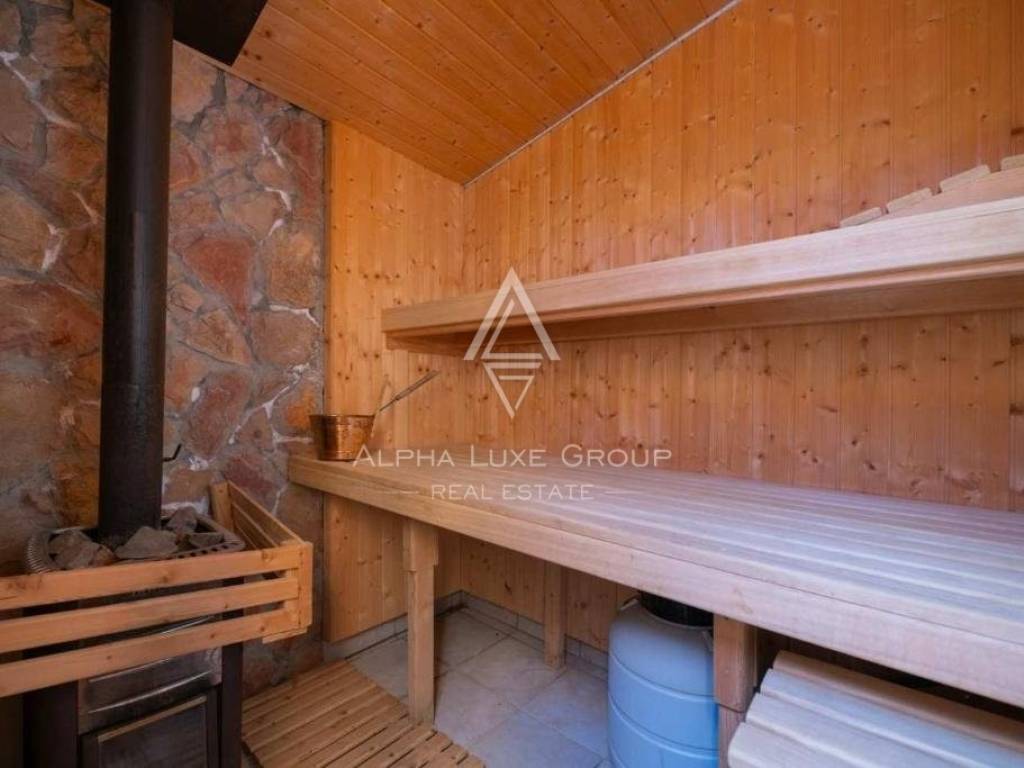 Outdoor living is elevated with a 24 m² heated swimming pool and a sunbathing area, complemented by a state-of-the-art sauna and Jacuzzi. The garden, adorned with native flora, includes a table tennis area and a children's playground, ensuring entertainment for all ages.