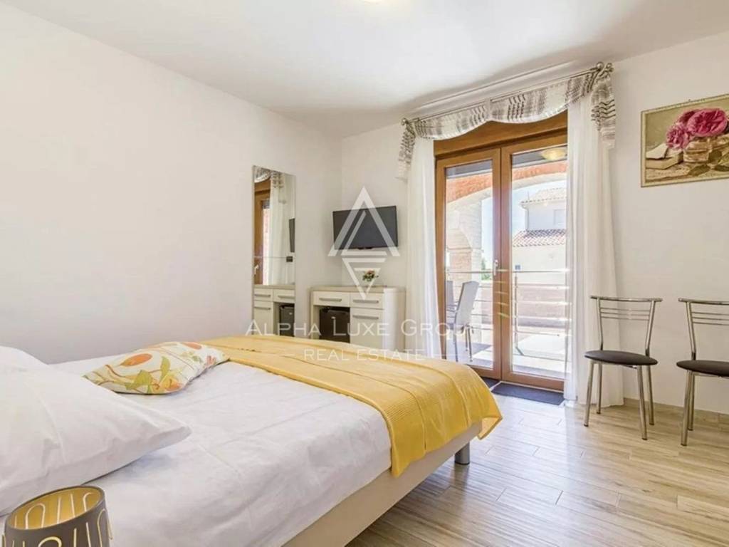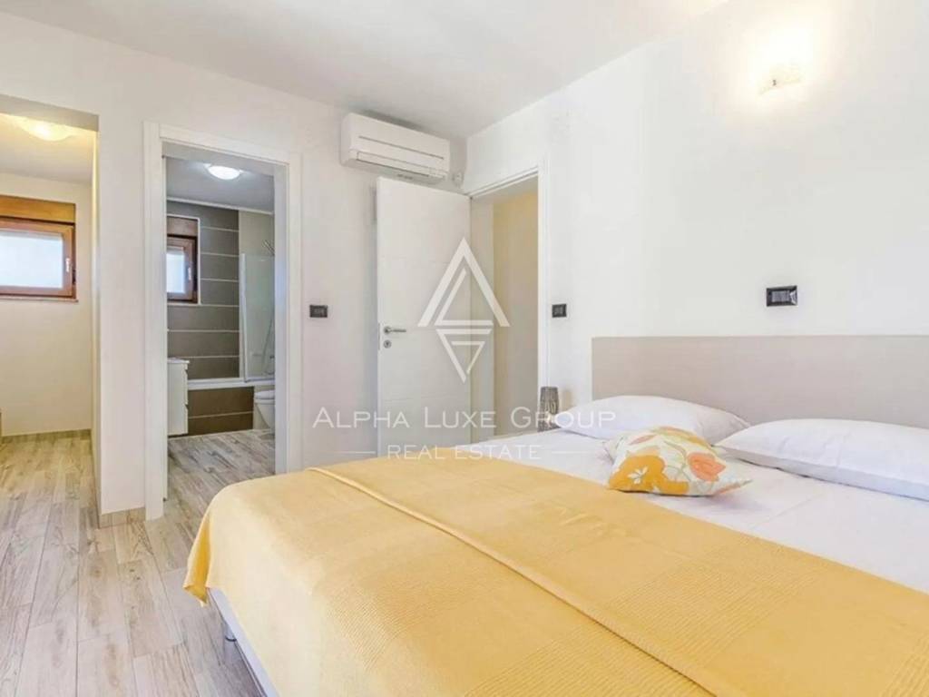 In the serene village of Jadreški, a short drive from Ližnjan, a contemporary villa with a swimming pool is now on the market. This modern property, extending over three levels including a basement, ground floor, and first floor, is perfectly suited for those seeking both luxury and tranquility. The basement houses two rooms - one as a playroom and the other ready for a sauna and relaxation zone, along with a toilet and shower.