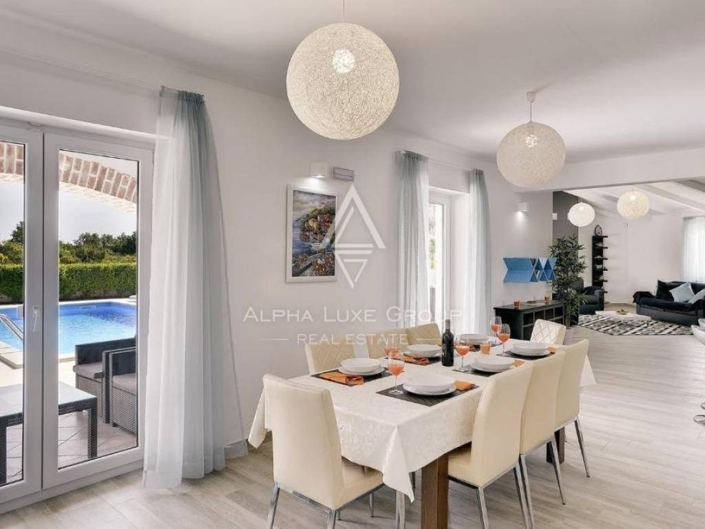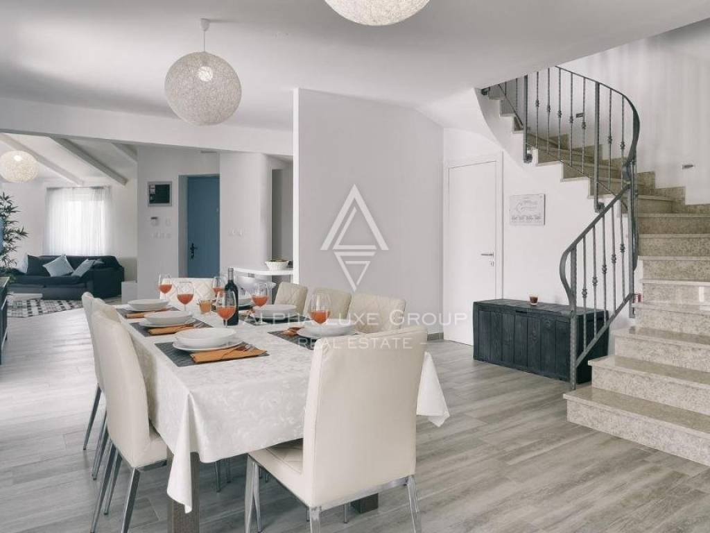 In the heart of Medulin, a mere 300 meters from the pristine sandy and pebble beaches, lies a remarkable opportunity to own one of two semi-detached villas. Each villa, part of a duplex, spans an impressive 220m2 on a vast 3000m2 plot, offering luxury and spaciousness.