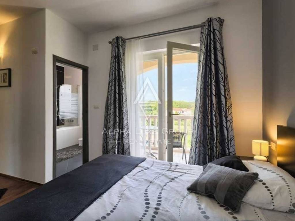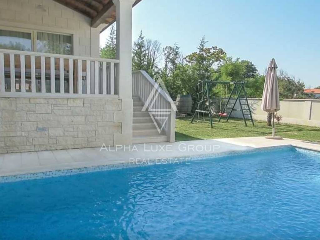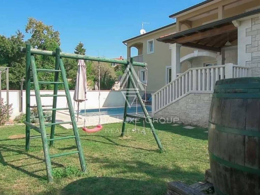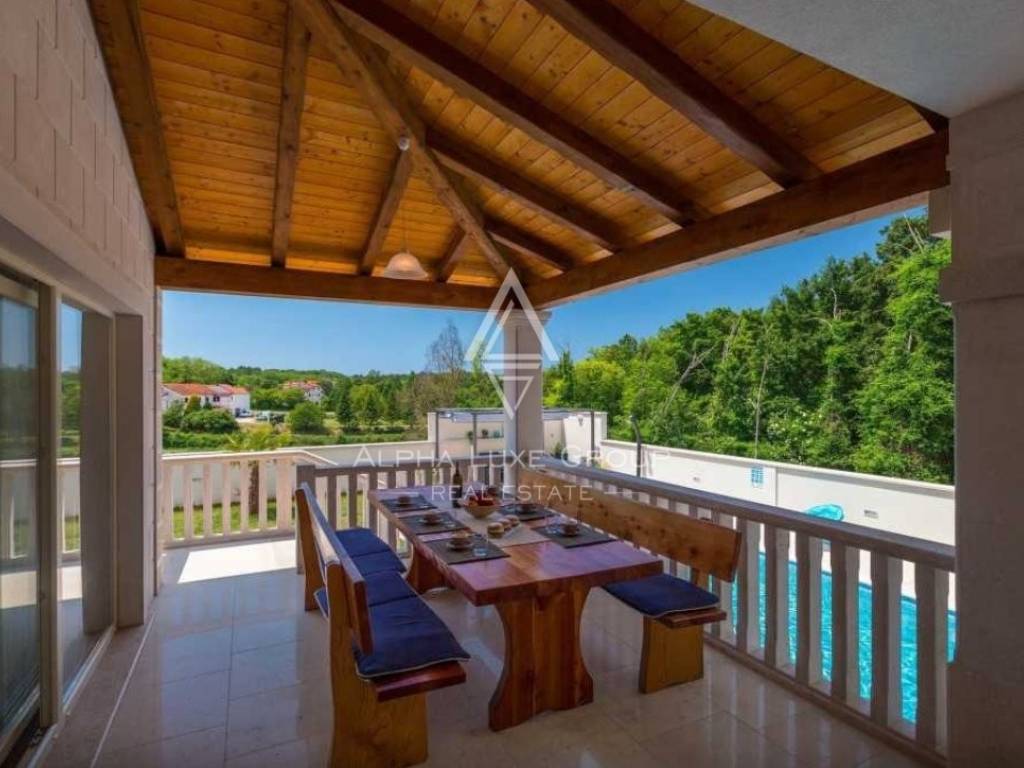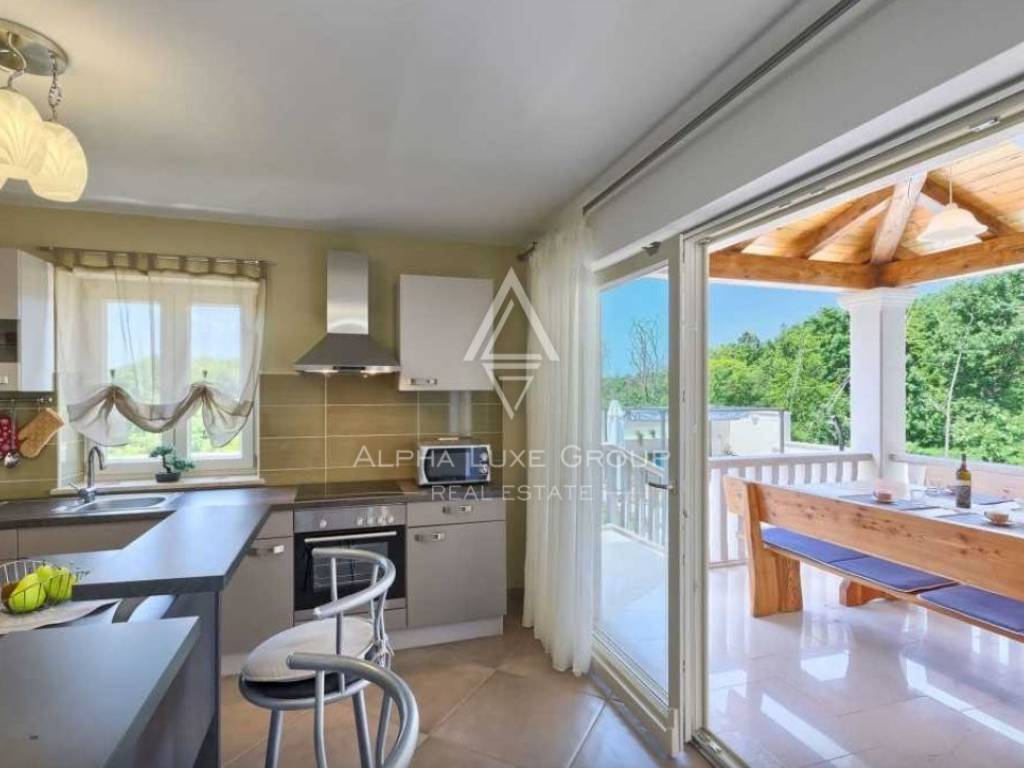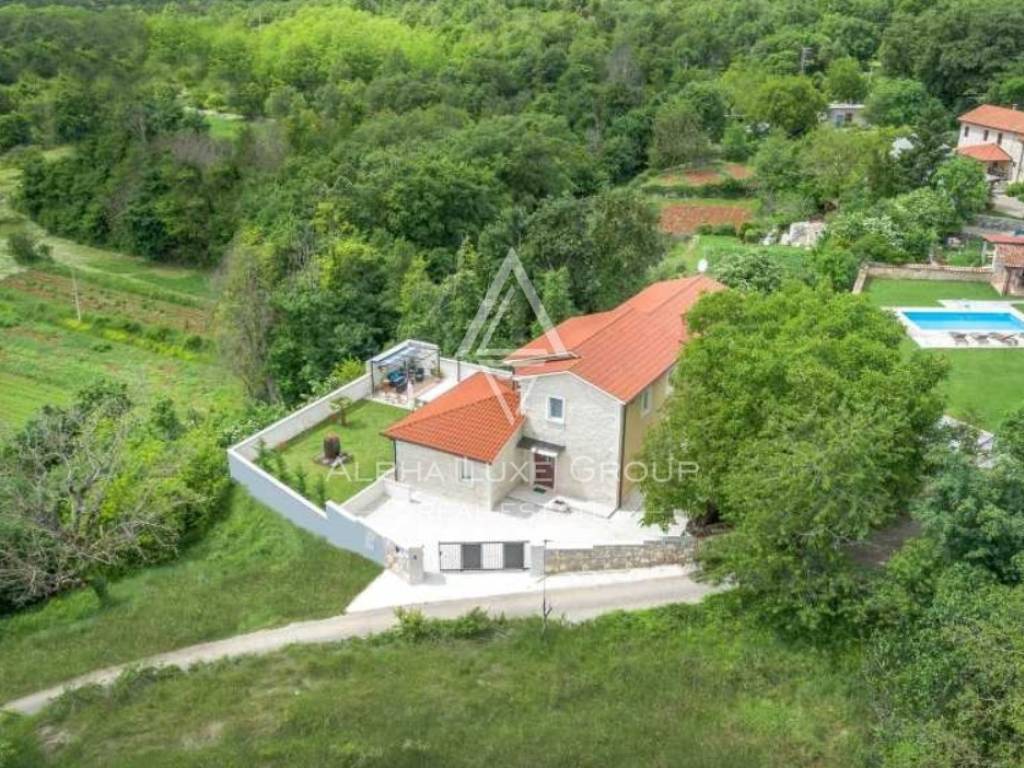 Nestled in the heart of Istria, this splendid villa presents an escape into nature, perfect for those seeking tranquility away from the hustle and bustle. The property boasts a secluded garden sprawled across 880 m², complete with a 26 m² swimming pool, a cozy outdoor pavilion with seating, a barbecue area, and a sheltered dining terrace adjacent to the kitchen. Additionally, private parking is accommodated for up to three vehicles.