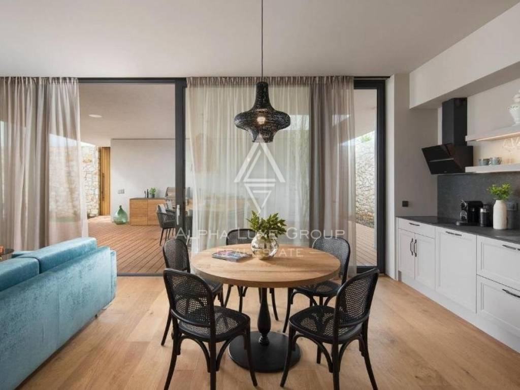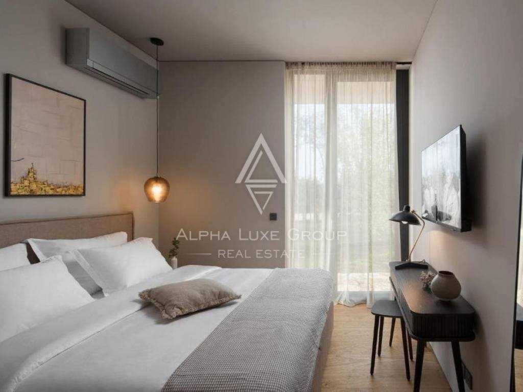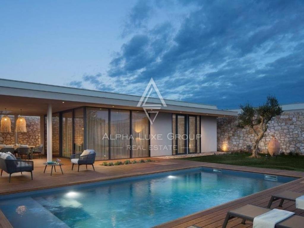 Located in a serene, secluded area within a small private resort in Vodnjan, Istria, this stunning one-story villa spans a total living area of 140.38 m2. The property is known for its immaculate design, both inside and out, and features a blend of beautifully appointed interiors with designer furniture, ensuring utmost comfort and a homely ambiance.