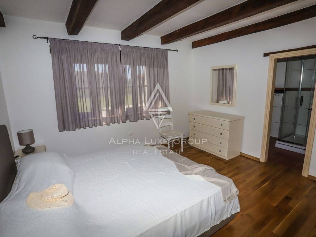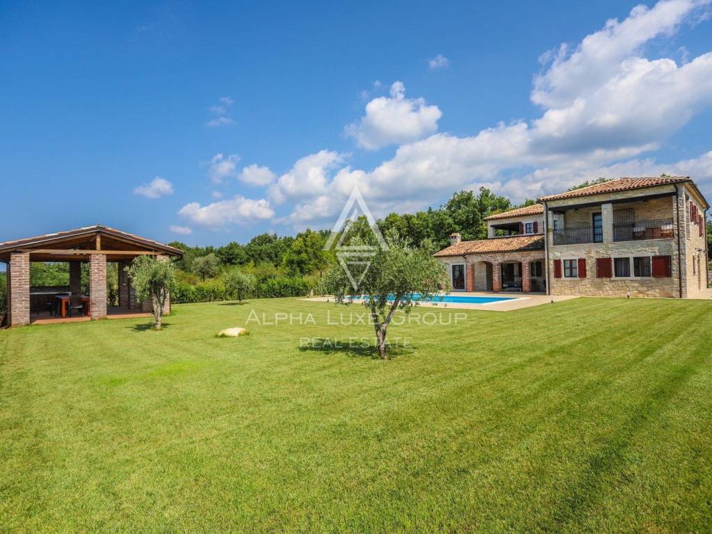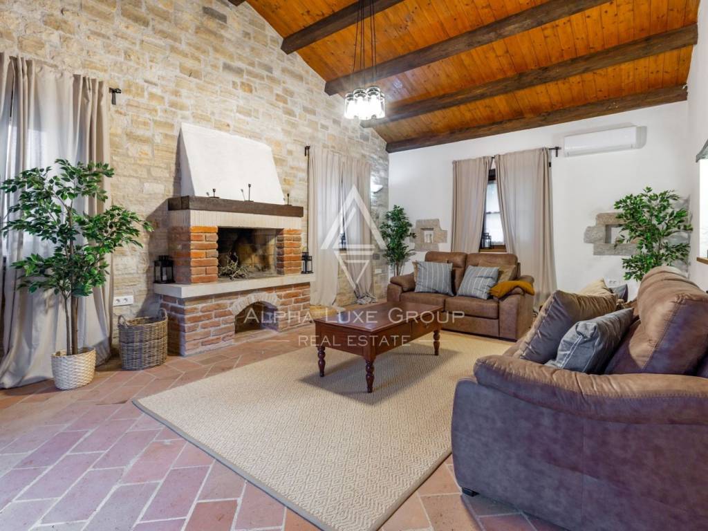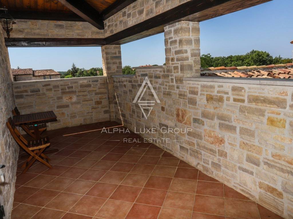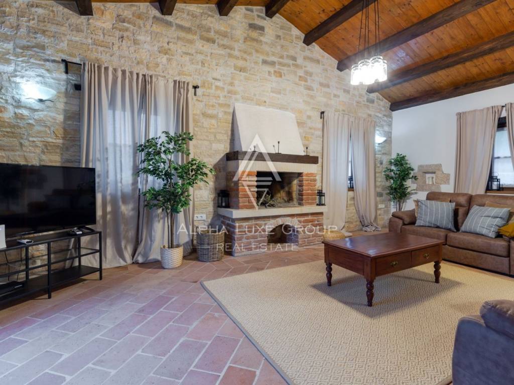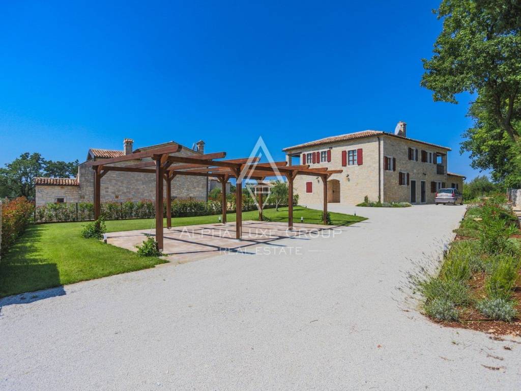 Nestled in the serene village of Rajka in Istria, this exquisite stone villa stands on a sprawling 1,772 m² plot, offering a blend of traditional charm and modern amenities across two floors.