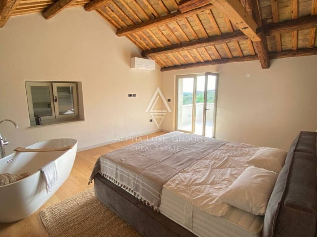 ALPHA LUXE GROUP is selling a semi-detached house, the last in a row, with a panoramic view of the sea, Brtonigla, and the surrounding vineyards, Buje, ISTRIA