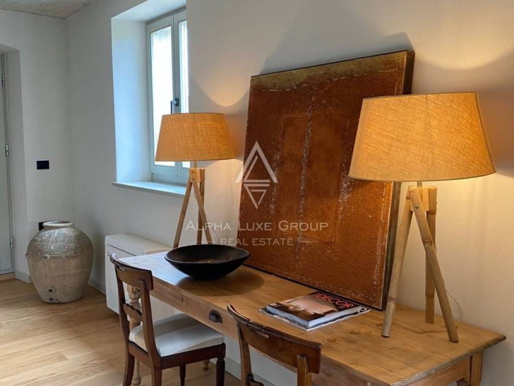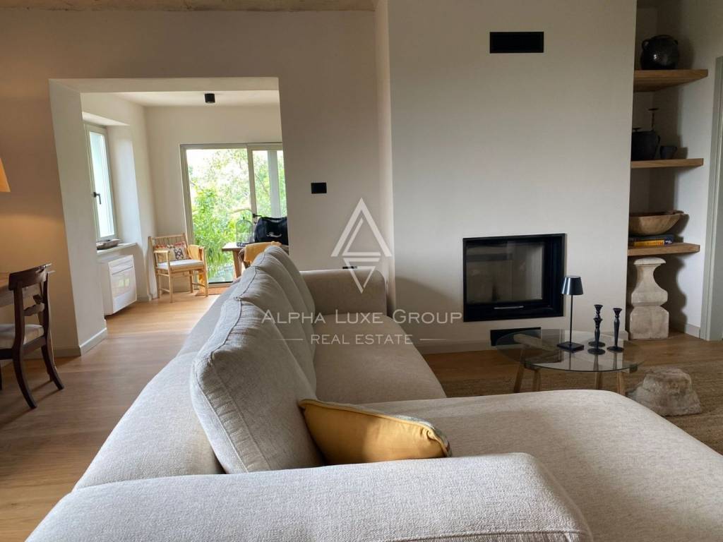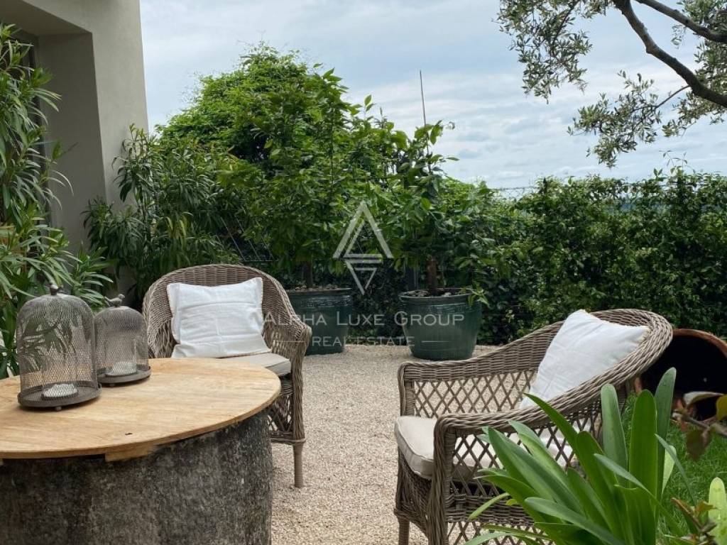 On the ground floor is a living room with a closed fireplace, a high-quality equipped Veneta Cucine kitchen, and a toilet. From the ground floor is a garden with a beautiful panoramic view of the surrounding vineyards and nature. There is a garden house in the beautifully landscaped and green garden.