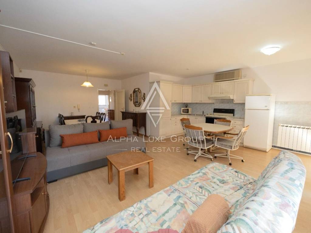 Located in a peaceful residential area of Pula, this fully furnished apartment offers 108 m² of comfortable living space ready for immediate occupancy. The layout includes two generously sized bedrooms, a bright open-plan living room seamlessly connected to the kitchen, a modern bathroom, a separate guest toilet, a convenient storage room, and a private balcony ideal for enjoying fresh air and relaxation.
