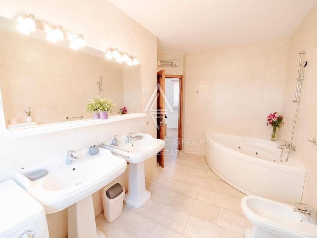 The lower level features a spacious tavern, storage area and boiler room, providing excellent utility space. On the ground floor, a welcoming living and dining area opens onto a covered terrace overlooking the garden. A well equipped kitchen, one bedroom and a bathroom complete this floor, along with direct access to a private garage. The first floor offers three bright bedrooms, a bathroom and two terraces ideal for relaxing outdoors.