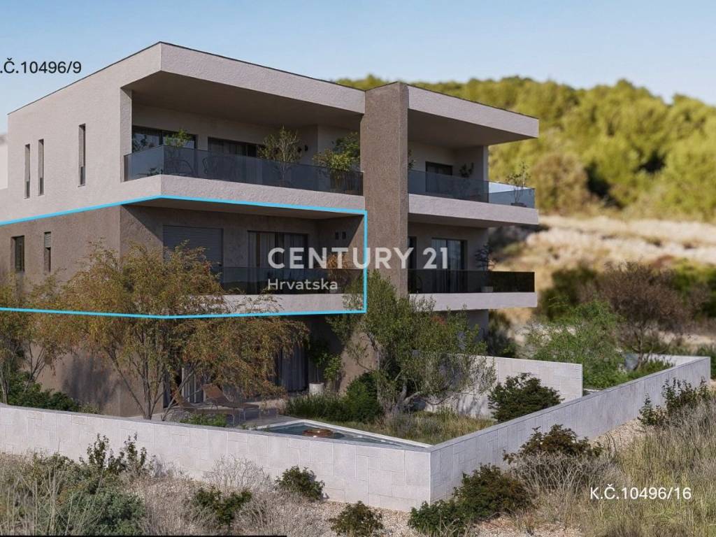 Bitno je naglasiti da se radi o dvije parcele. Jedna parcela je građevna (k.č.10496/9) na kojoj se gradi objekat, a susjedna parcela (k.č.10496/12) je negrađevna i ima ulogu kupcu osigurati trajni pogled na more.