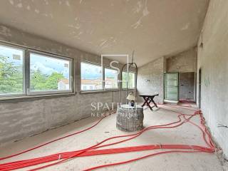 ŽMINJ, ISTRIA, we offer a renovated house in the unfinished phase, located in an extremely quiet location, just a 2-minute drive from the center of Žminj. The house extends over the ground floor, first floor and high attic. Given the floor plan, there is a possibility of separating it into two residential units. The ground floor with a separate entrance has segments of multi-purpose space, and can function as an independent apartment/flat or as a tavern, or a space for socializing with family and friends. Heating and cooling is solved by air conditioning, with the possibility of installing a fireplace.