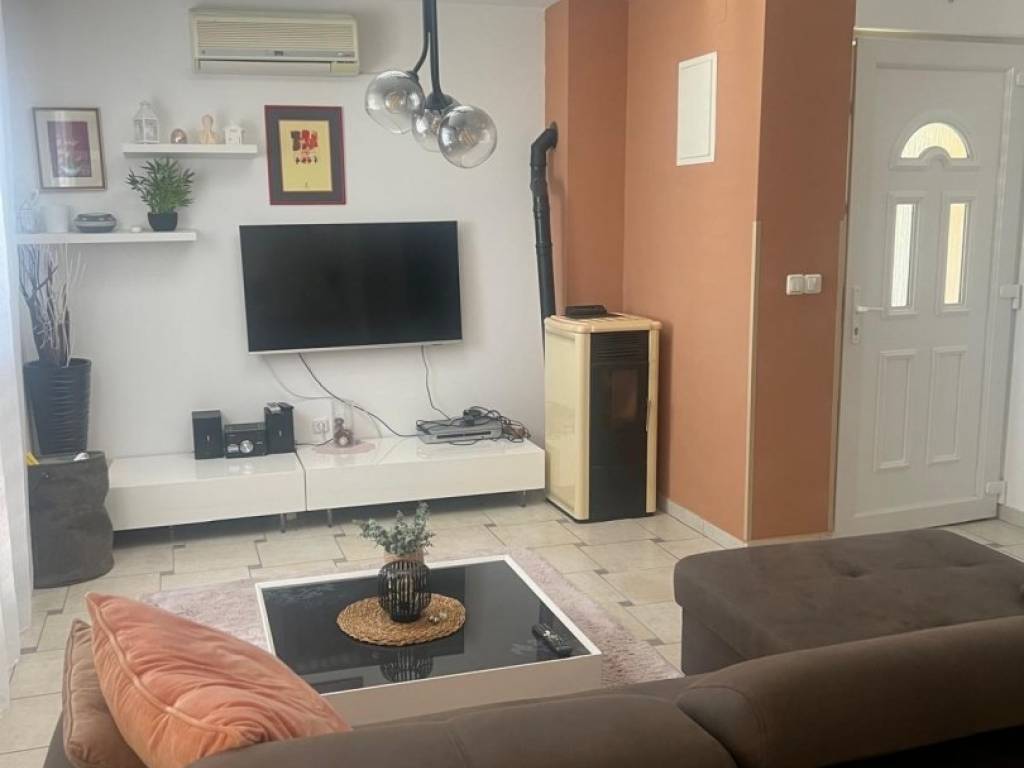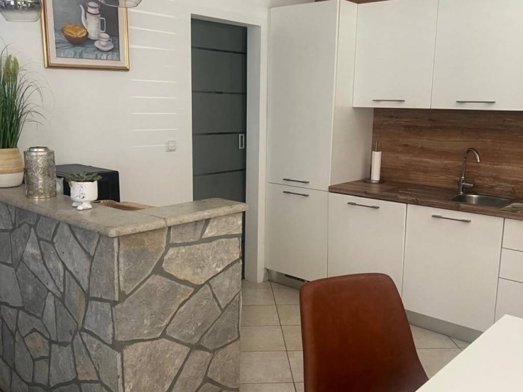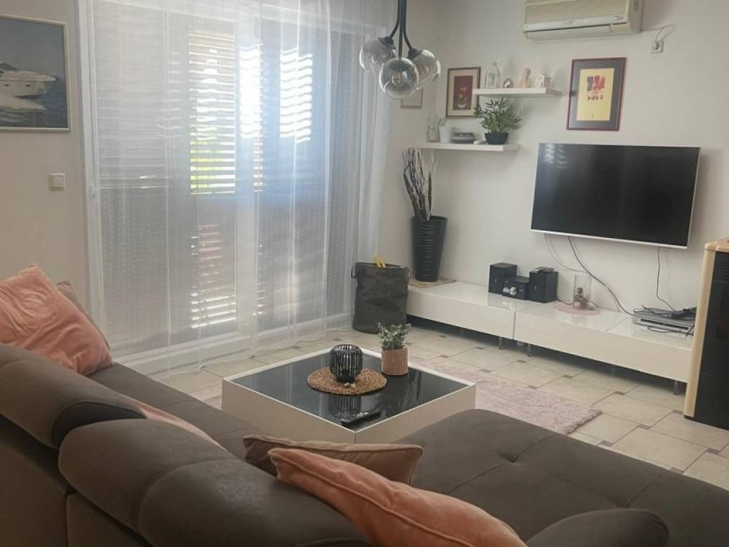 For sale is a functionally and well-furnished apartment with a total area of 73 m², located on the ground floor of a small residential building with a total of four residential units, in a quiet and attractive location in Pinezići on the island of Krk. The layout of the space is designed for a comfortable stay and includes an entrance area, two bedrooms, a bathroom, a storage room and a kitchen connected to the dining room and living room. The living room has direct access to a spacious terrace of 40 m², with an open view of the sea, greenery and the nearby island of Cres.