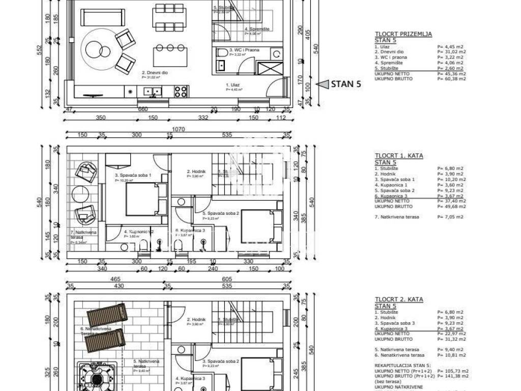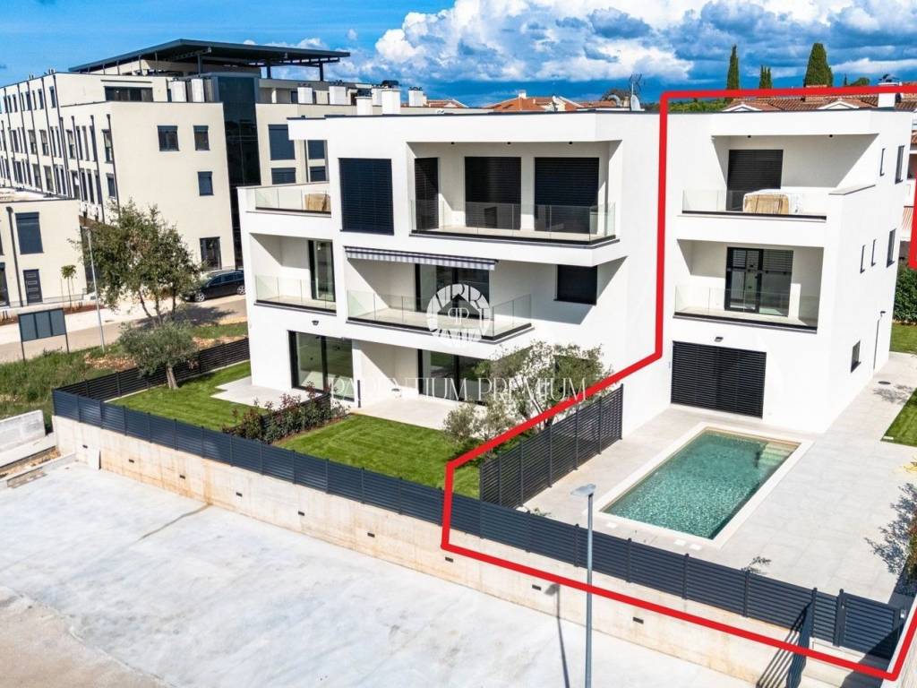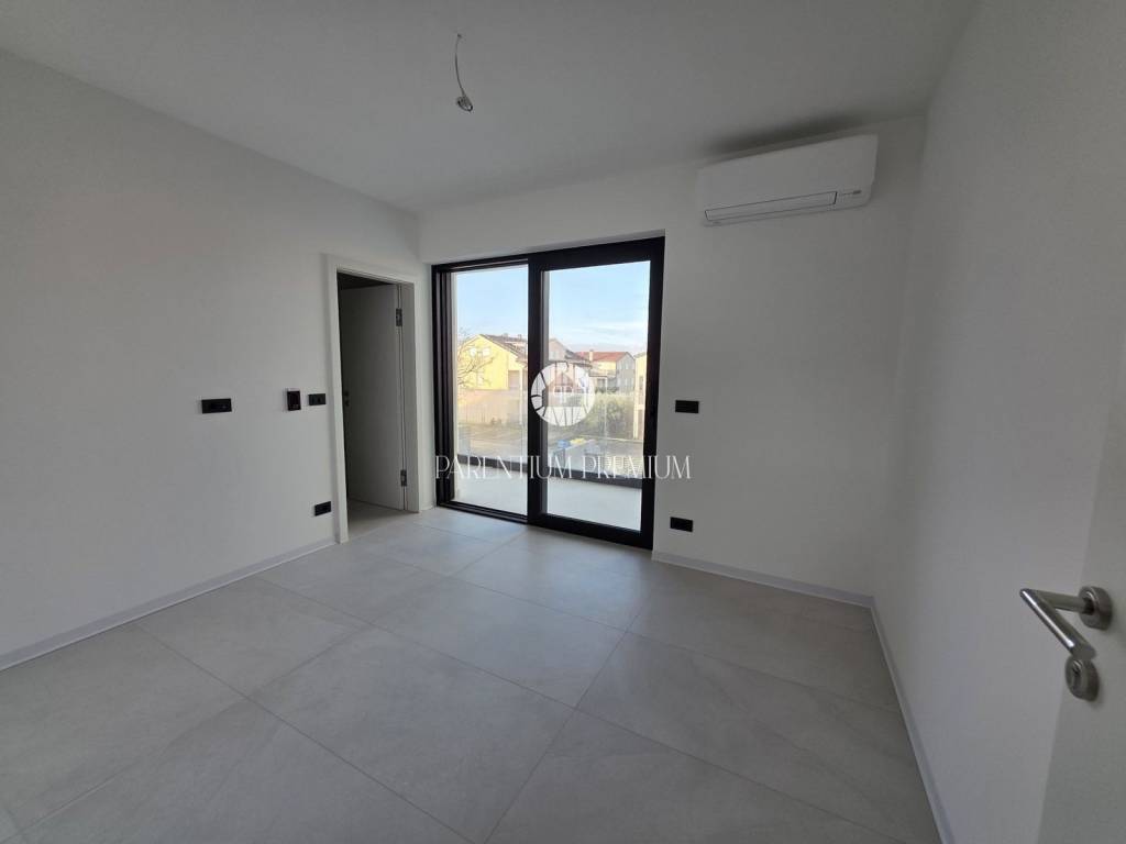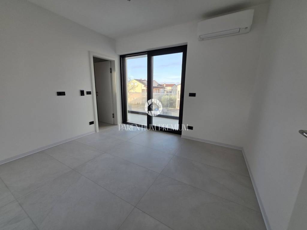 Istria, PorečIn a new and modern building, only about 800 m from the sea, a terraced house is for sale, this is the first house in the row.It contains: ground floor, first and second floor.The ground floor of the house consists of an entrance hall, kitchen, living room with kitchen and dining room, toilet and storage room under the stairs.Through large glass walls you can access a covered terrace and a small garden of about 270m2.An internal staircase leads to the first floor, where there are two bedrooms, each with its own bathroom and a covered terrace of about 7 m2, the second floor consists of one bedroom, bathroom and a partially covered terrace with a beautiful open view of the sea and the surroundings.Electric underfloor heating throughout the apartment and air conditioning are there for heating and coolingThe property is subject to VAT.The planned completion of construction is at the end of 2024.Due to its attractive location and proximity to the sea, this property is an ideal investment for both tourist rental and family life.