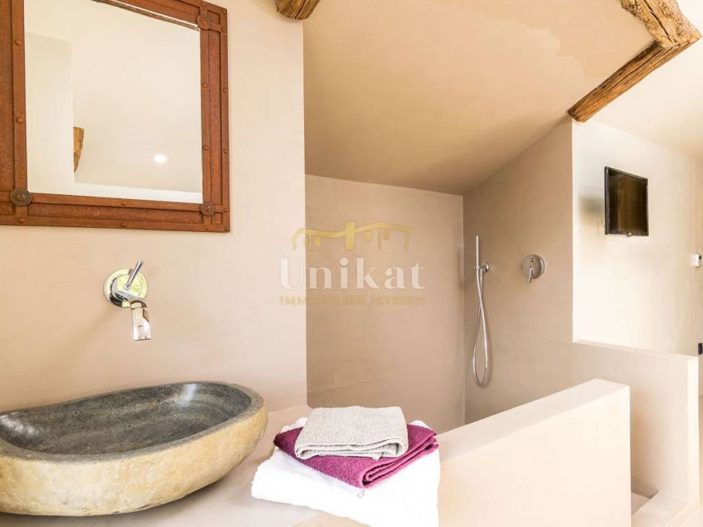 The house is equipped with a fireplace, underfloor heating, air conditioning units for heating and cooling. On the property, there is a swimming pool, sunbathing area, and parking for multiple vehicles.