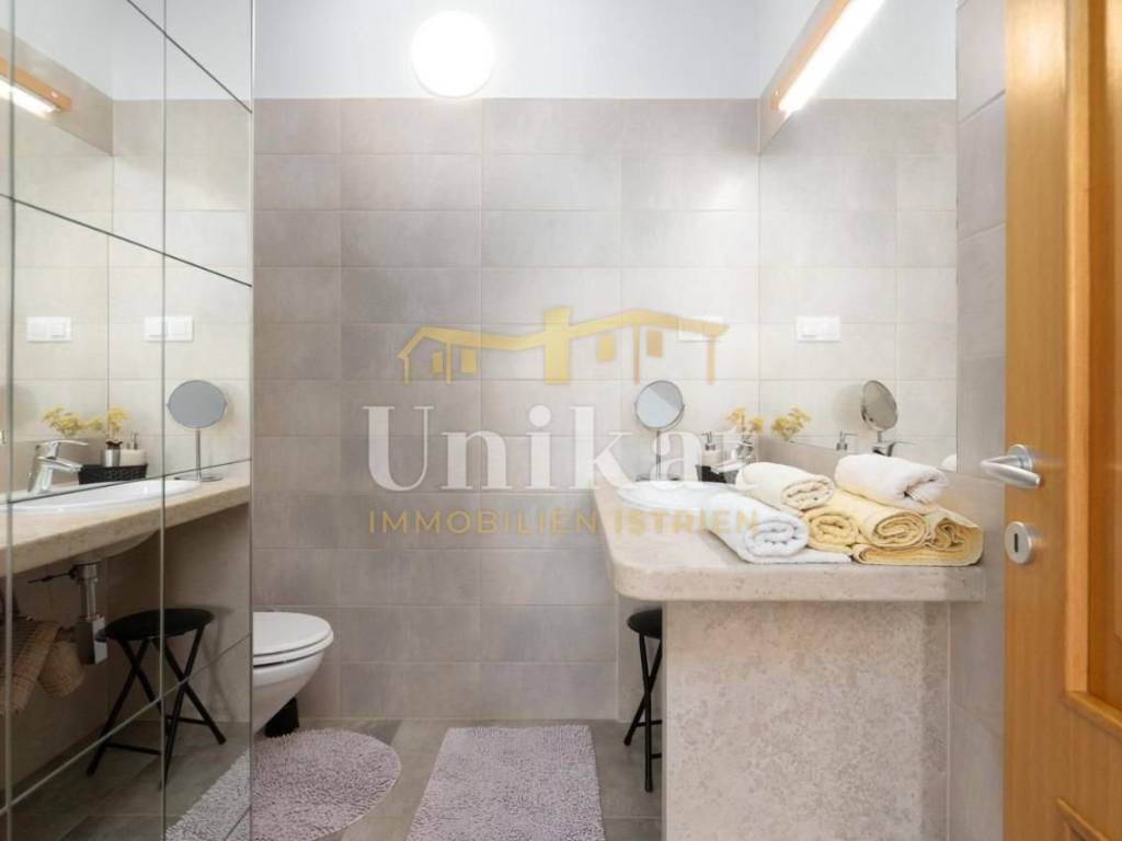 Beautiful house with a swimming pool and sea view, located in a small quiet place 13 km from the sea and 15 km from Poreč. The house consists of a ground floor and an upper floor.