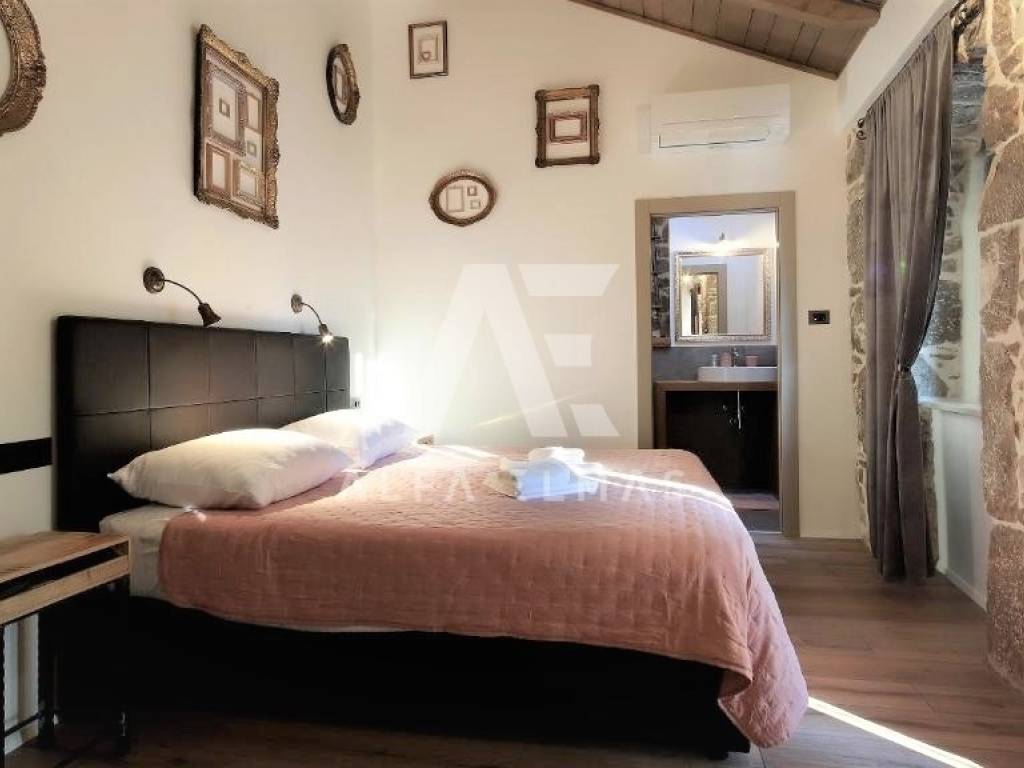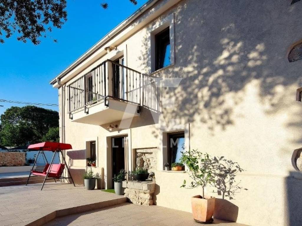 Krk, surroundings, beautiful autochthonous villa with swimming pool near the town of Krk. The property is located at a distance of 1500m from the sea, and has a living area of ​​180m2. The villa in the vicinity of Krk has a ground floor and a first floor. On the ground floor there is an entrance hall, living room, kitchen and dining room, and a guest toilet. An internal staircase leads to the first floor where there are three bedrooms and three bathrooms. The autochthonous villa has a fully landscaped garden, where there is a barbecue, a swimming pool and a sunbathing area. There is a parking space for 3 vehicles. The villa is fully decorated and equipped with high-quality ceramics, household appliances, lighting, and air conditioning in all rooms. Preparations have been made for solar panels and underfloor heating. The documentation is in order.