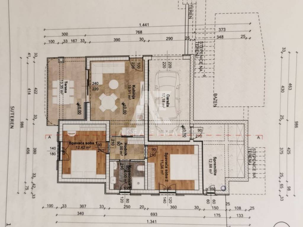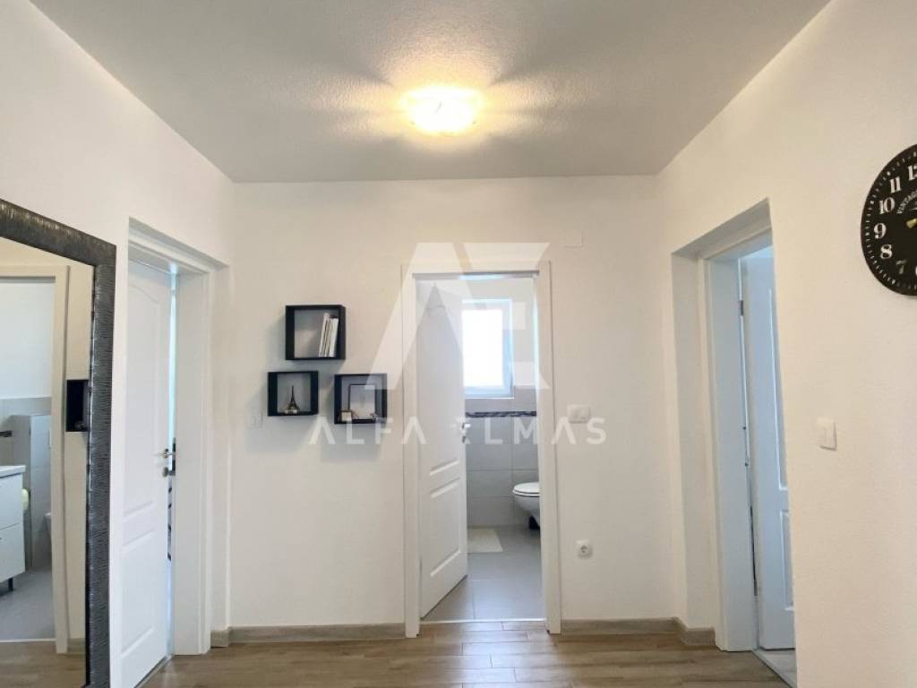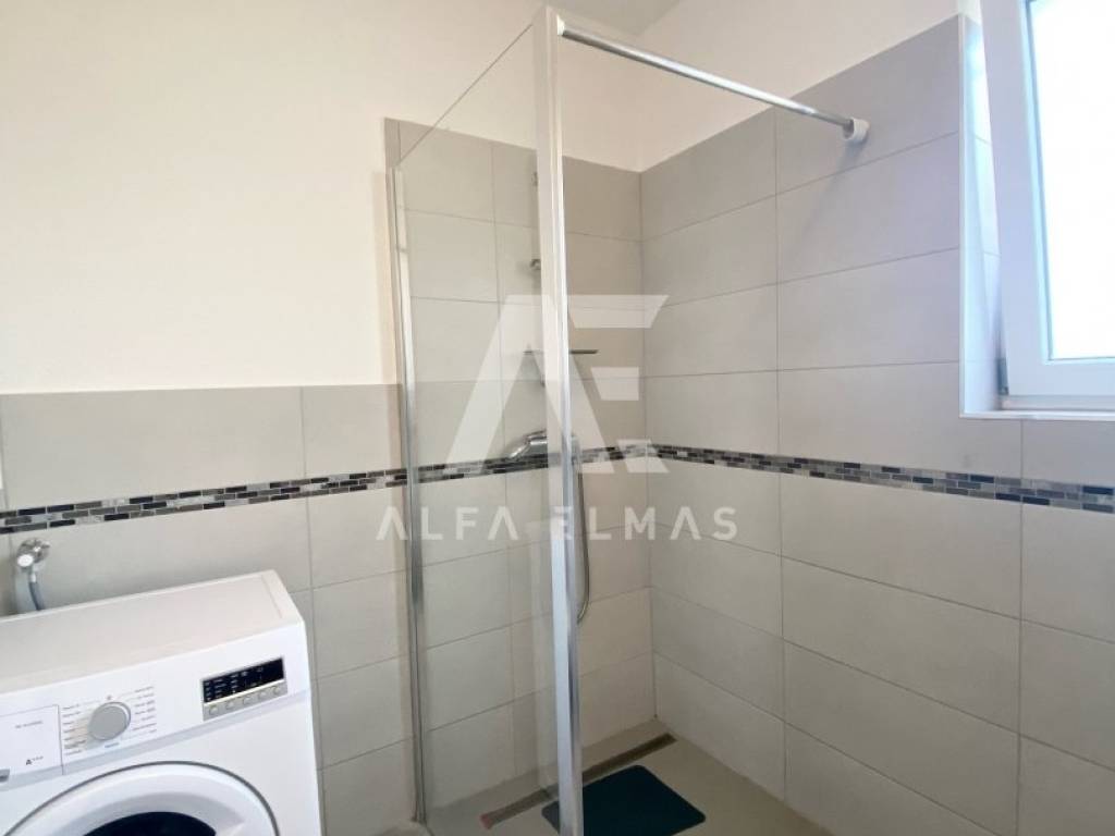Uvala Soline, apartment in the basement, total living area 55m2. The apartment consists of two bedrooms, a living room, a kitchen and a bathroom and a storage room. From the living room there is an exit to the 13m2 terrace. Next to the apartment there is a garage of 17 m2 that can be converted into a studio apartment. The two-room apartment is only 400m away from the sea and well-kept beaches. The apartment has one parking space in the landscaped garden. The documentation is in order.