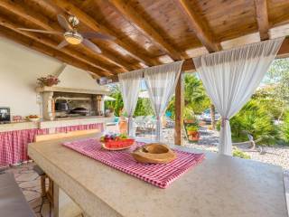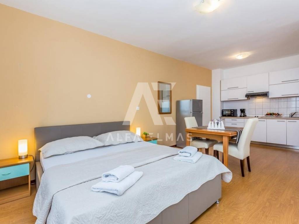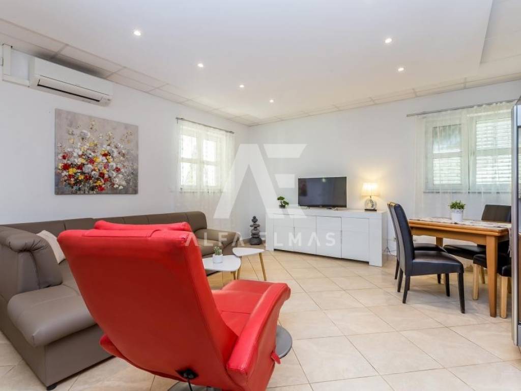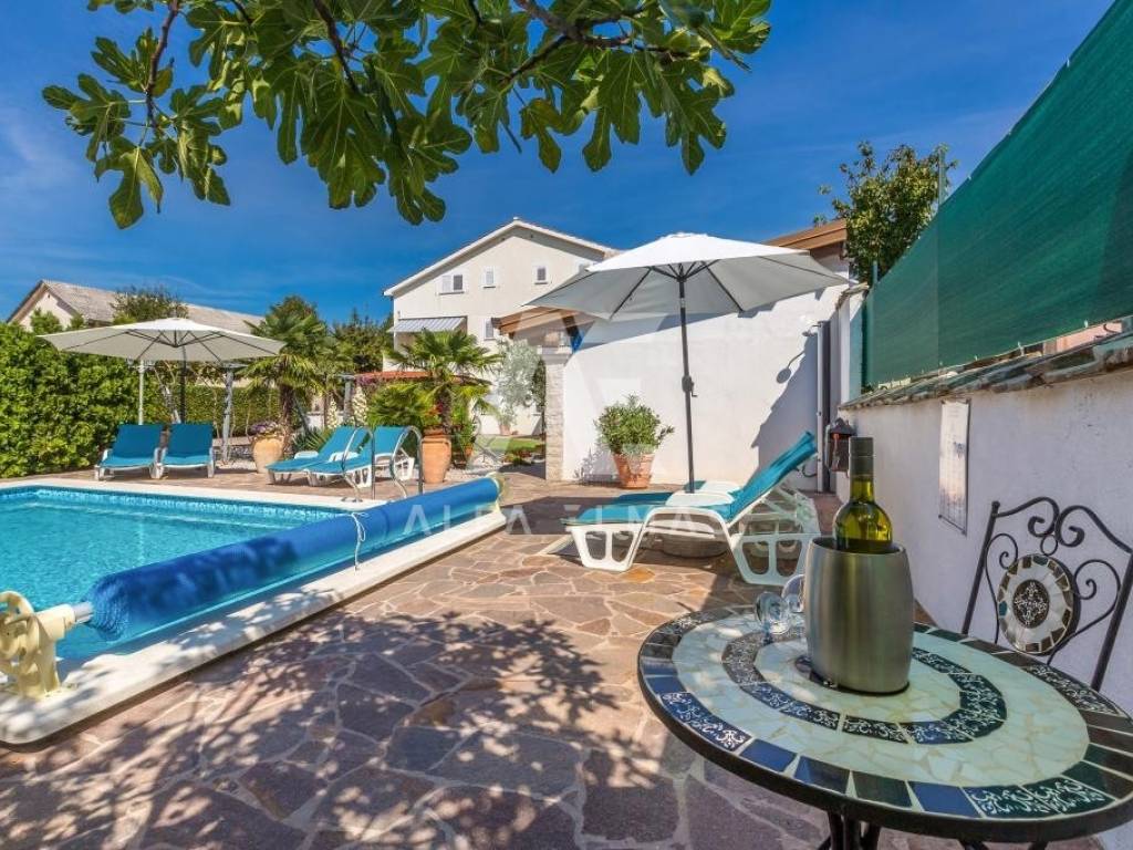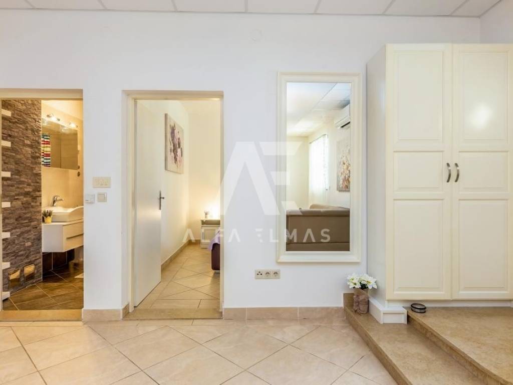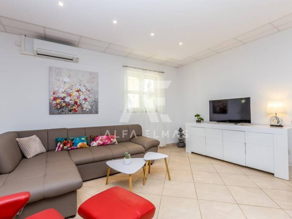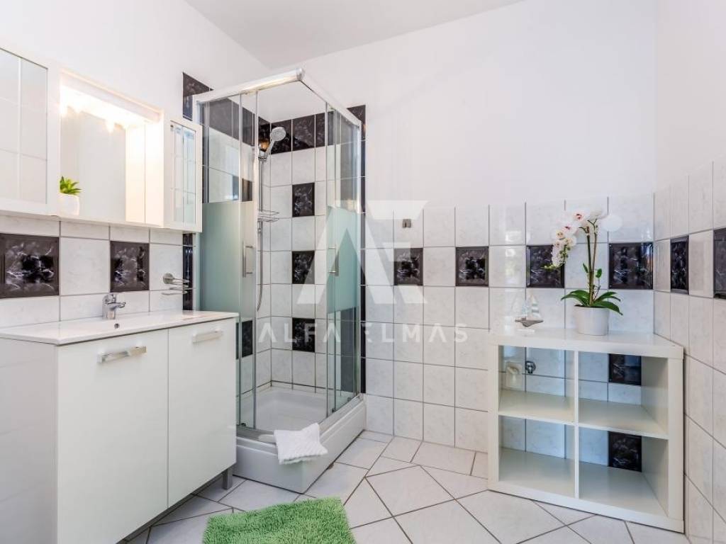 Malinska, surroundings, detached house with nine residential units in a small village in the vicinity of Malinska, only 2000m from the sea and well-kept beaches. The property has a ground floor and two floors, with a total living area of ​​681m2. On the ground floor of the property there are two one-bedroom apartments and one two-bedroom apartment, a storage room and a laundry room. Both apartments have access to a landscaped yard and a gazebo, where the sunbathing area and swimming pool extend beyond. An external staircase leads to the first floor, where there are 5 studio apartments, each of which has access to a balcony. On the second floor there is a spacious apartment of 177m2. The apartment consists of an entrance hall, three spacious bedrooms, two bathrooms, and a living room, kitchen and dining room that make up the whole. From the living room there is an exit to the terrace, which offers a partial view of the sea and the green belt of the island of Krk. The detached house in the vicinity of Malinska was built in 2003 and renovated in 2016. Additional equipment includes high-quality ceramics, sanitary ware, and air conditioners. The house is sold fully furnished and ready to move in or start renting for the purpose of tourism.