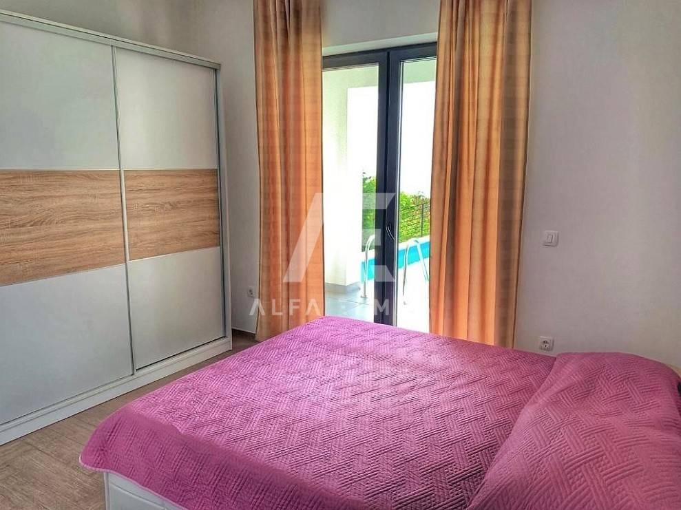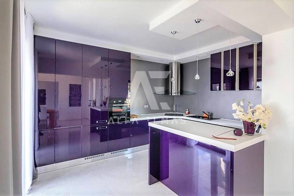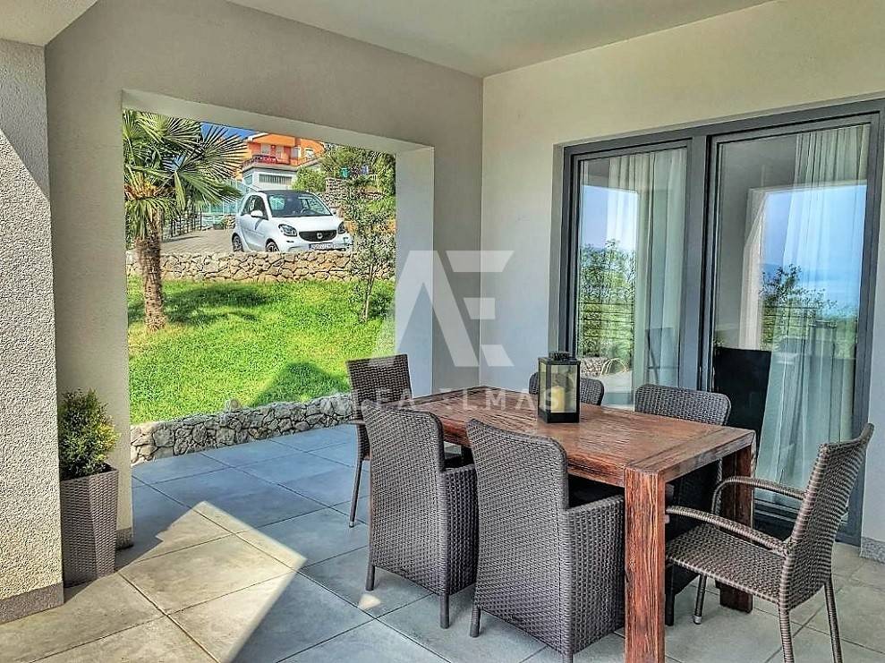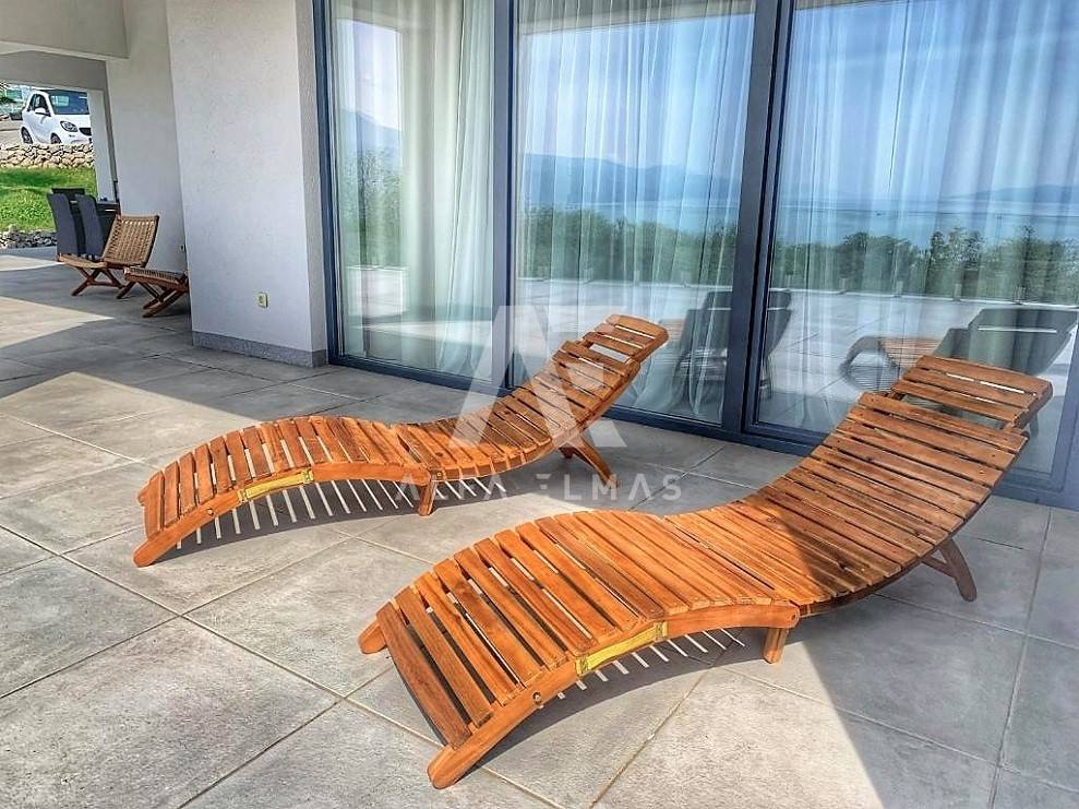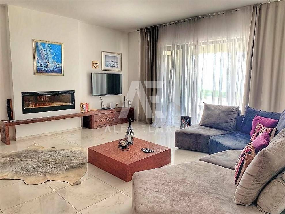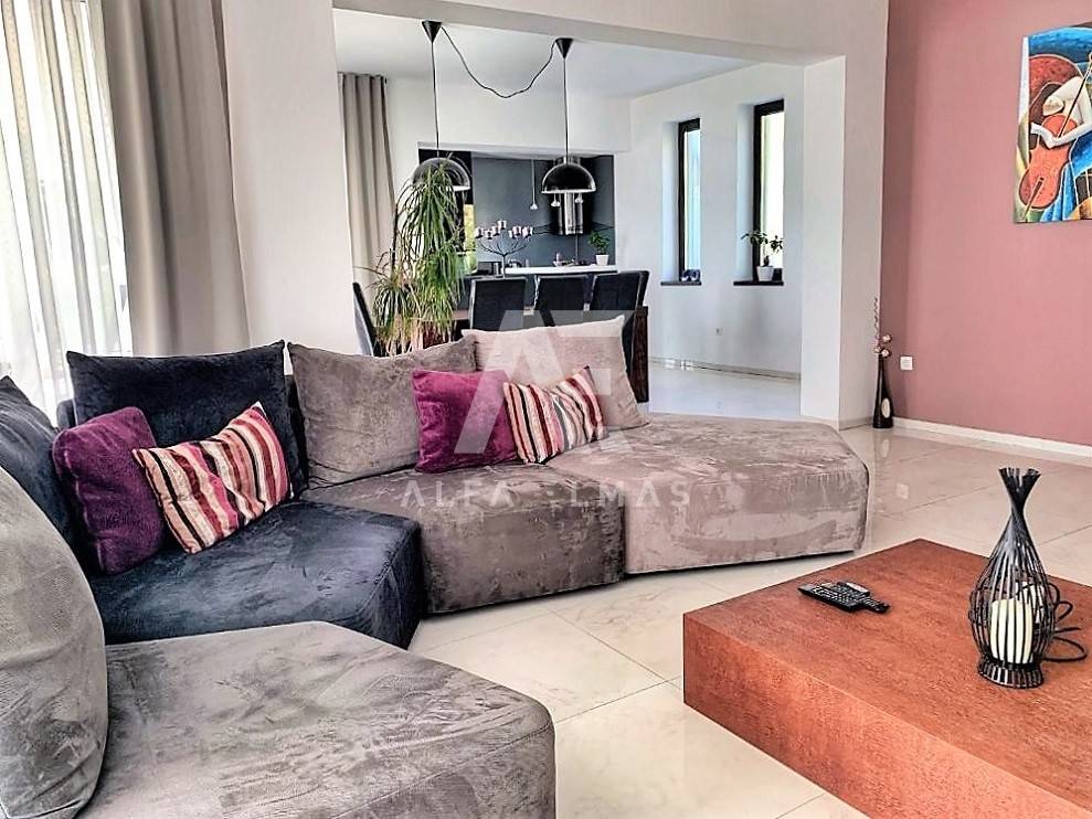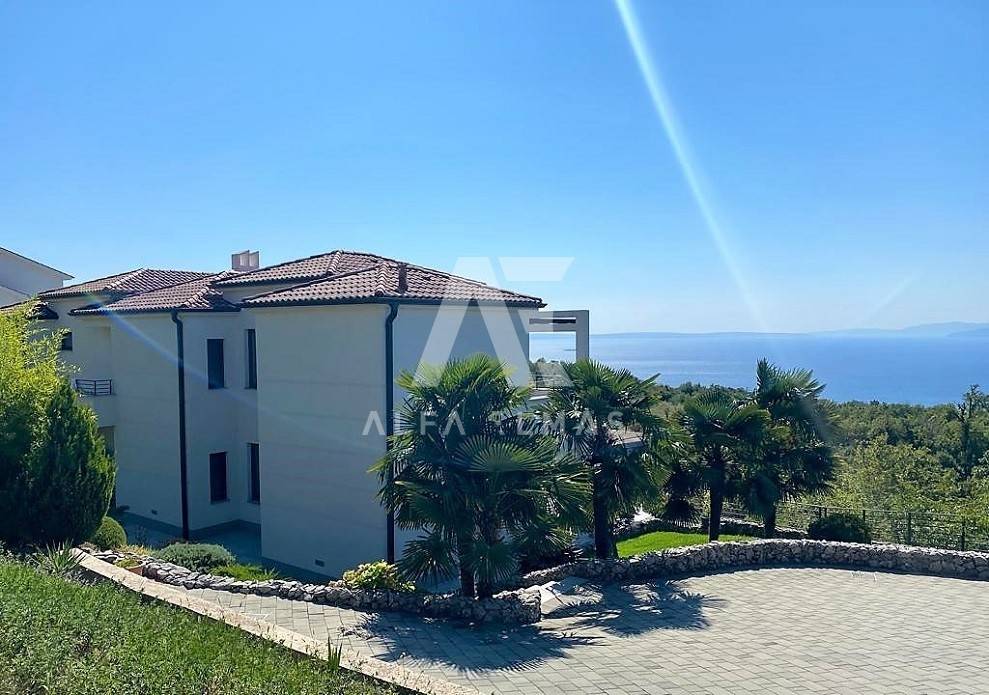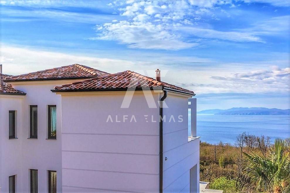 Kastav, a beautiful luxury villa with a pool and a panoramic view of the sea. The villa is located only 1350m from the sea, and has two floors: ground floor and first floor. The materials from which the villa was built are of top quality and from renowned manufacturers. The luxury villa consists of two separate apartments with a living area of ​​200m2. The apartments are fully furnished with first-class furniture and household appliances. Large glass walls offer a fabulous view of the Kvarner Bay from every room. The apartments have the same layout and consist of an entrance hall, two large bathrooms and one smaller bathroom for guests, walk-in wardrobes, three bedrooms, kitchen, dining room and living room from which there is an exit to the terrace with a magical view of the Kvarner bay!! The spacious garden has a swimming pool with a sunbathing area, indigenous plants, top-quality outdoor lighting and parking for several vehicles. The equipment of the villa includes high-quality ceramics and sanitary ware, air conditioning in all rooms, underfloor heating, TV. The villa is located in an attractive and quiet location near all facilities. Documentation in order!!