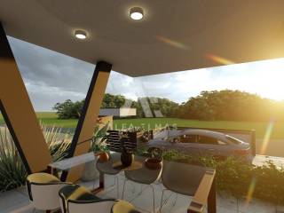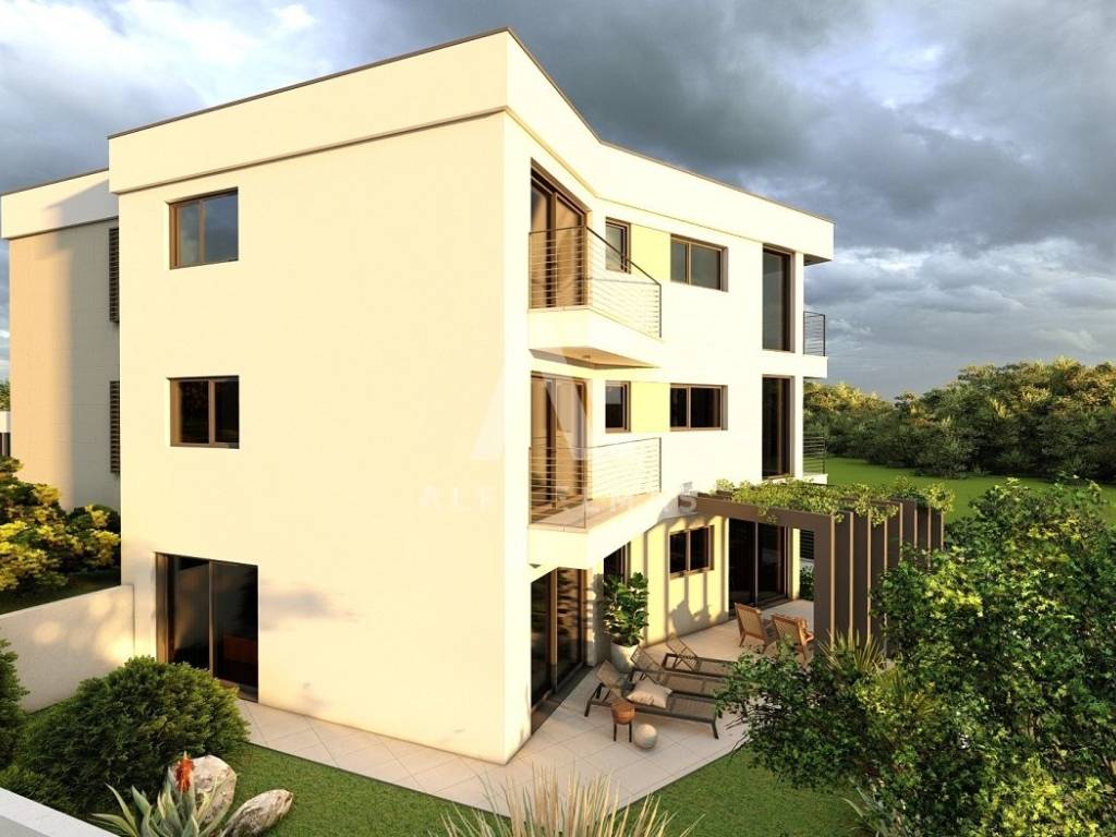 The three-room apartment has a living area of 136 m2 and consists of an entrance hall, two bathrooms, three bedrooms, a kitchen, a dining room and a living room with access to a covered balcony. The apartment will be equipped with first-class ceramic tiles, first-class sanitary ware, underfloor heating, ALU carpentry, heating and cooling air conditioning system. Completion of the works is expected in the summer of 2024. The apartment also has a landscaped garden of 75 m2. Attractive location only 500 m from the sea and accompanying facilities. The documentation is in order.