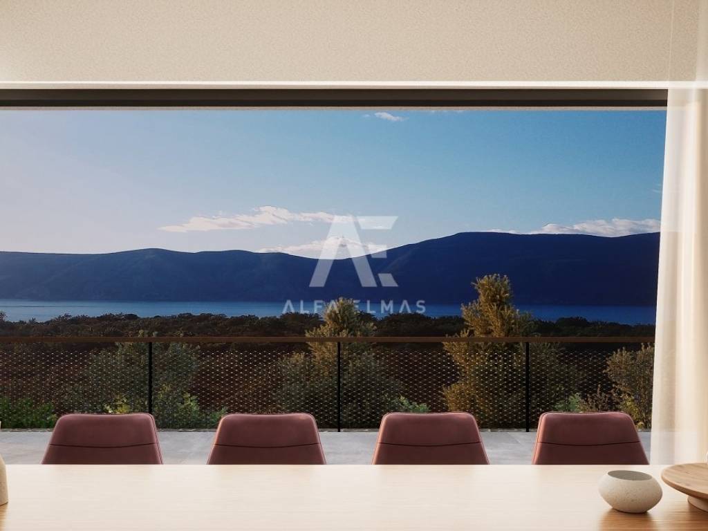 Prizemlje: ulazni hodnik, kupaonica, otvoreni prostor s kuhinjom, blagovaonicom i dnevnim boravkom, izlaz na prostranu terasu s pogledom na more