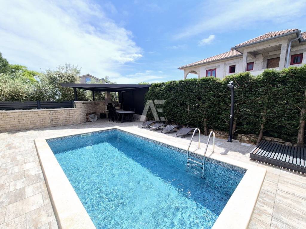 The villa is part of a modern building consisting of two duplex residential units, each with a separate entrance, its own pool, and complete privacy.