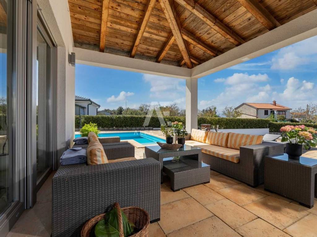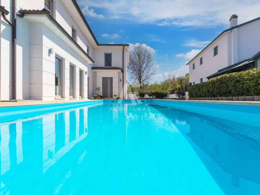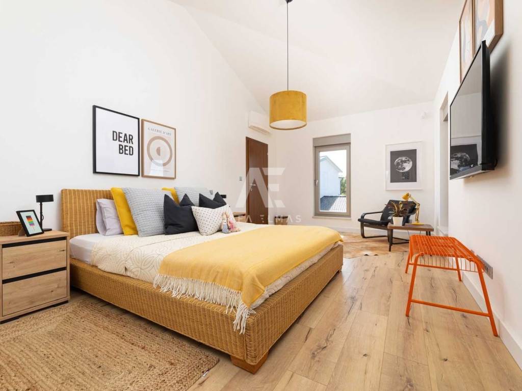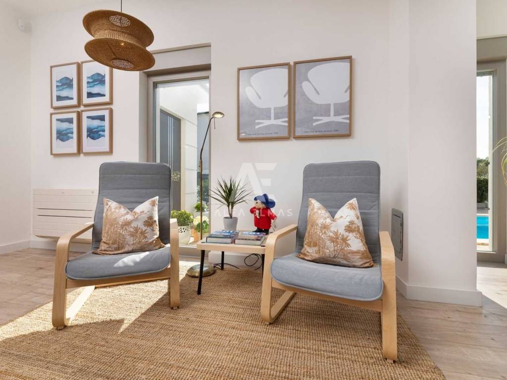 The villa is equipped with high-quality ceramics, vinyl flooring, PVC joinery, air conditioning, and central heating, combining elegance and comfort.