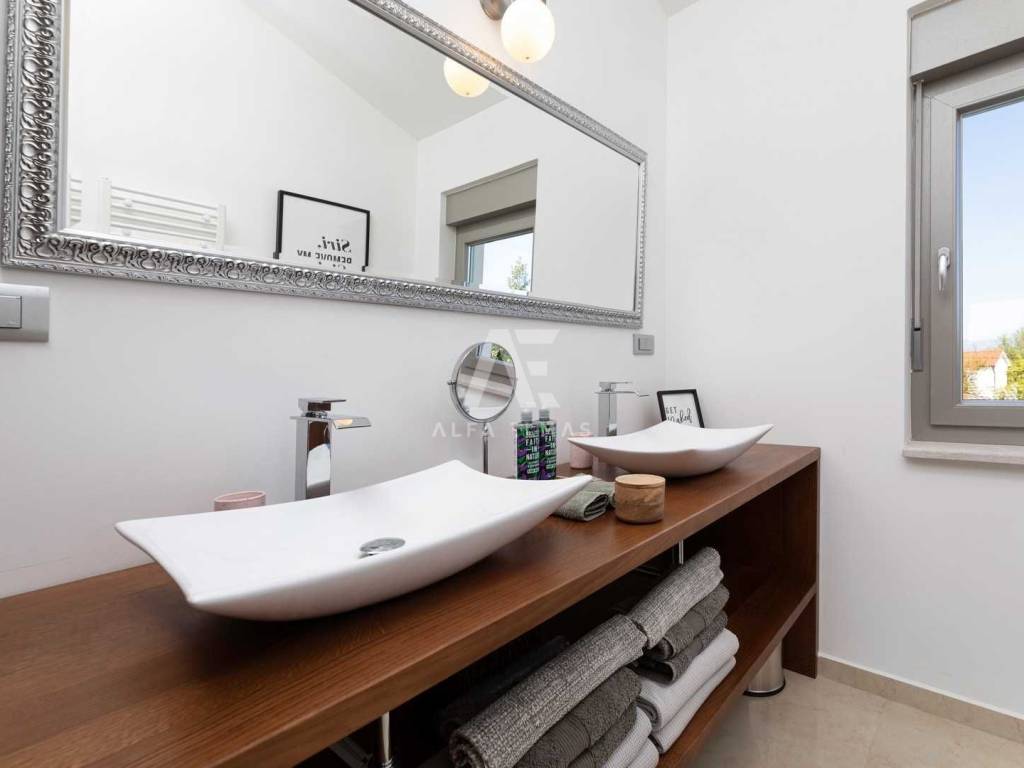 Enjoy the luxury and comfort of this exclusive villa located in a peaceful area near Malinska. The property offers approximately 270 m² of living space on a 992 m² plot, built in 2017, comprising a ground floor and first floor.