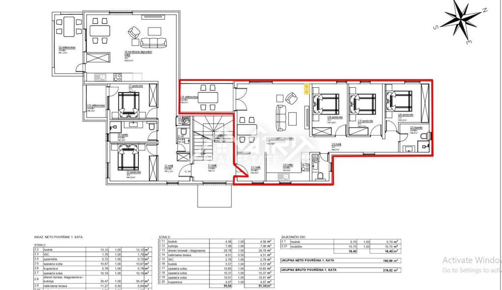 A stunning apartment is for sale in a residential building with five units, located close to both the sea and the city. The apartment is located on the first floor, covering 95 m², and consists of a spacious open-plan living room, kitchen, and dining area, two comfortable bedrooms, one bathroom, one WC, and a terrace.
