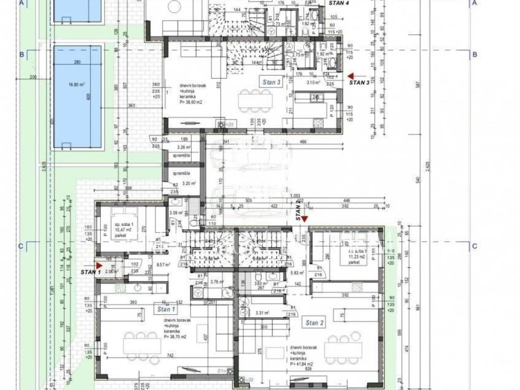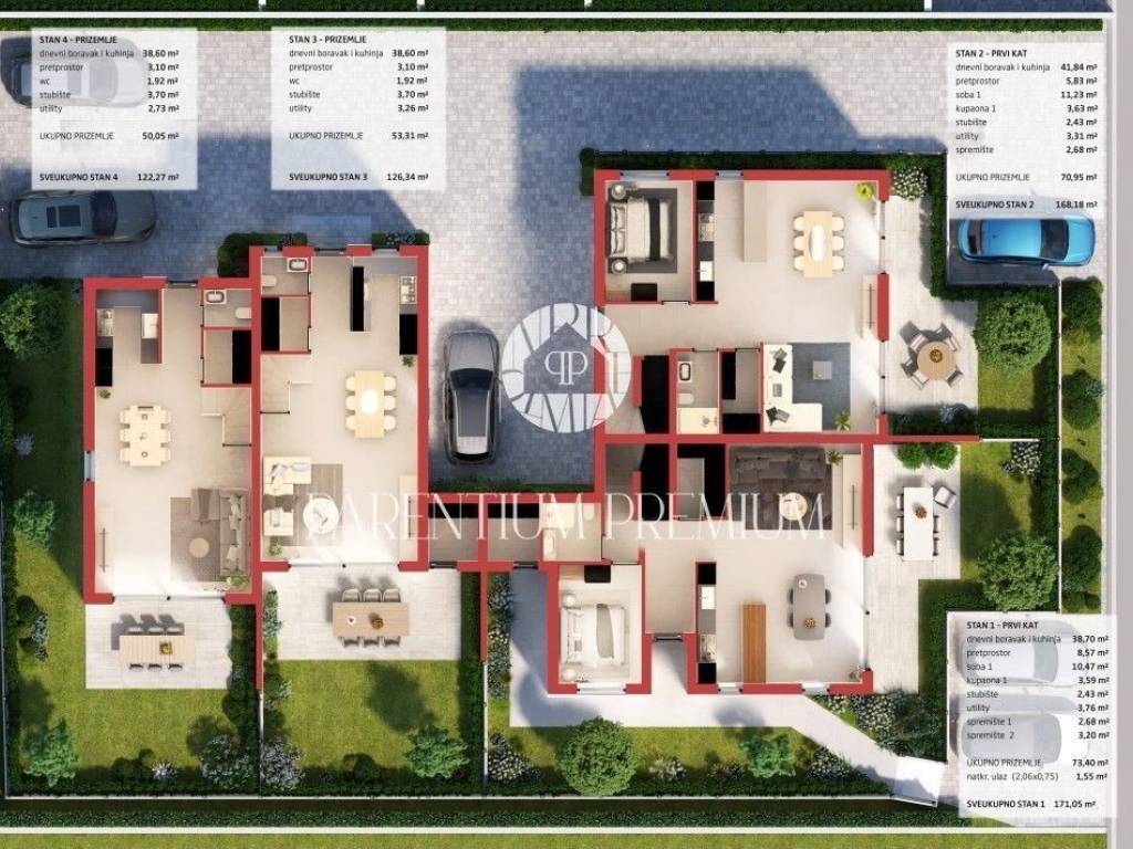 Istria, PorecA spacious modern semi-detached house is for sale in a sought-after location in Poreč, close to all amenities necessary for life.House number 2 has a total area of 171 m2 and extends over three floors.On the ground floor there is an entrance hall that leads to a spacious living room with a kitchen and dining room according to the open space concept, which has access to a covered terrace and yard. On the ground floor there is also one bedroom, bathroom, utility/laundry room and one storage room.On the first floor there is a hallway, three bedrooms, each with its own bathroom, while two have access to a covered terrace.In the attic there is a SPA relax area with a sauna, a bathroom and a large terrace with a Jacuzzi connection.The house will be built with quality materials, tiles and floor coverings, block brick walls (25 cm), thermal insulation (12 cm), PVC joinery with triple insulated glass, blinds and mosquito nets.Underfloor heating and air conditioning in the rooms, and solar panels for additional energy efficiency.There will be two parking spaces in front of the house.The planned completion of the turnkey construction without furniture is 06/2026.The buyer does not pay property tax.Due to its exceptional position and proximity to the center and all necessary amenities, this property offers the perfect solution for a spacious and functional home or as an investment for tourist purposes.