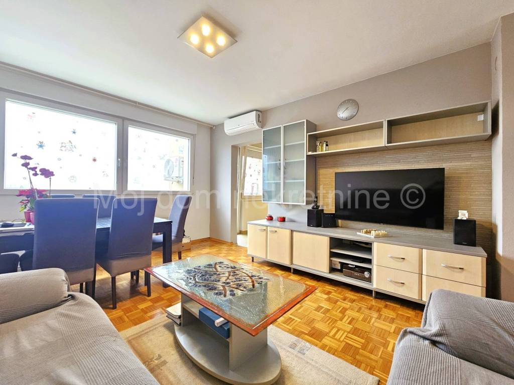 Prodaje se namješten 3 soban stan s loggiom. Nalazi se na 3.katu manje zgrade. Stan je izrazito svijetao radi svoje dvostrane orijentacije. Smješten je u blizini vrtića, škole, doma zdravlja, trgovine, javnog prijevoza te drugih bitnih sadržaja. Besplatan parking oko zgrade. U prizemlju zgrade nalaze se zajednički biciklarnik i spremište koje pripada stanu. 2020.g. kompletno je uređena kuhinja (nova glazura i podno grijanje, novi kuhinjski elementi s aparatima - Danküchen). 2018.g. zgrada je prošla kroz energetsku obnovu (PVC stolarija, fasada i krovište). 2002.g. promijenjene su sve instalacije.
