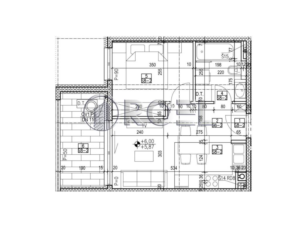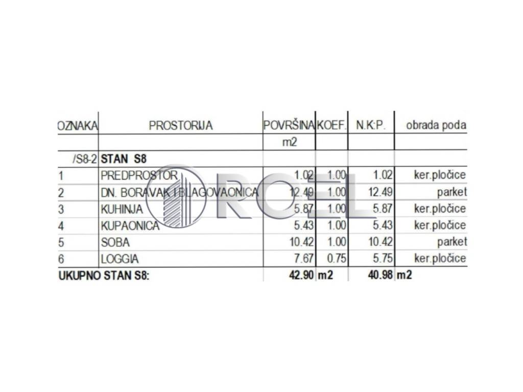 Two-bedroom apartment on the second floor of a new building with an elevator in the center of Zaprešić, NKO 40.83 m2. The building has three floors and there are a total of 34 apartments in the building. It consists of an entrance, a living room with a kitchen and a dining room with access to a loggia, a bedroom and a bathroom with a toilet. The apartment is oriented to the southwest. The apartments in the building will be equipped to high standards, aluminum joinery, electrically adjustable aluminum blinds, three-layer glass, the first glass of which is stopsol (reflective colored glass that reflects the sun's rays). The heating and cooling system is the latest and highest quality version of heat pumps, which, with additional thermal insulation from rock wool (15 cm), result in savings of up to 70% compared to a classic heating system. It is possible to buy a garage space with the apartment, but it is not a requirement.