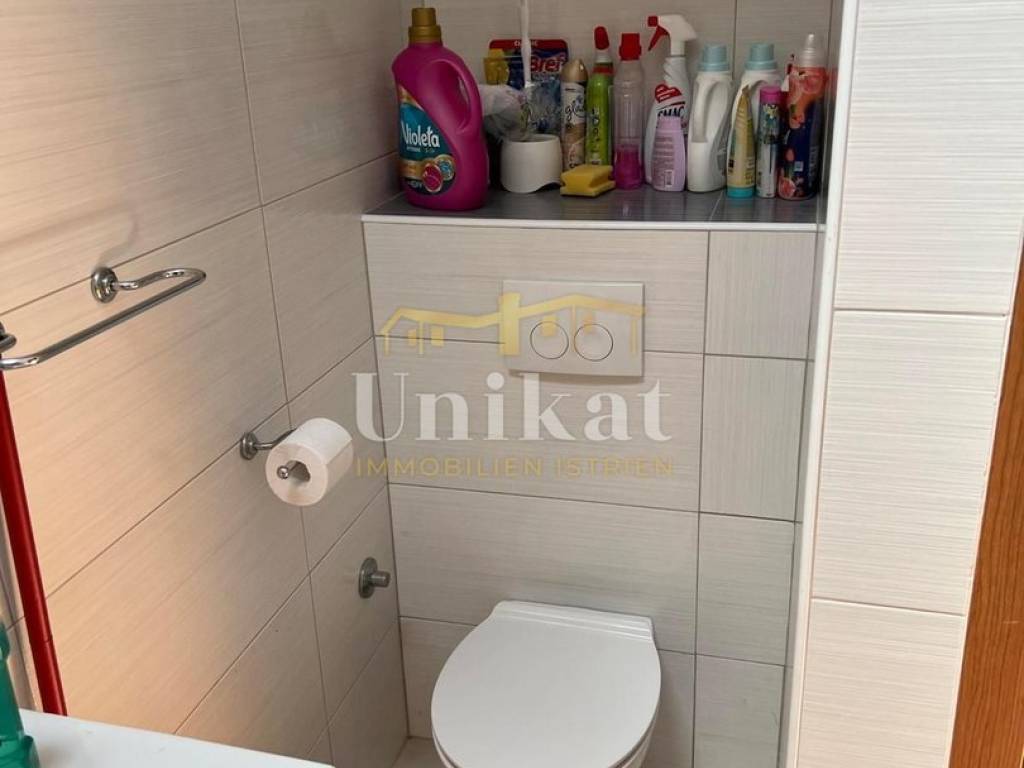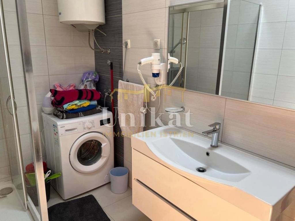 The apartment is located on the second floor, specifically in the attic of a residential building in a small town near Poreč, 2 km from the sea and 10 km from the town of Poreč. The neighborhood consists of residential buildings, family houses, and holiday homes. The area has very good infrastructure with all necessary amenities for everyday life such as markets, restaurants, cafes, a pharmacy, a post office, and similar.