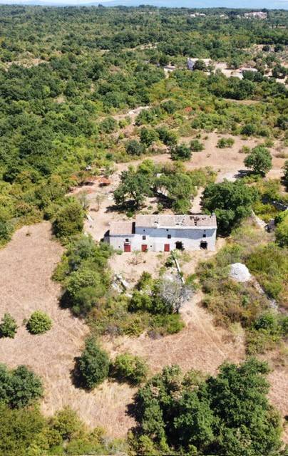 An authentic stone house for renovation is for sale, located in an exceptionally peaceful and secluded area, offering complete privacy and an open panoramic view of nature, partially overlooking the sea.