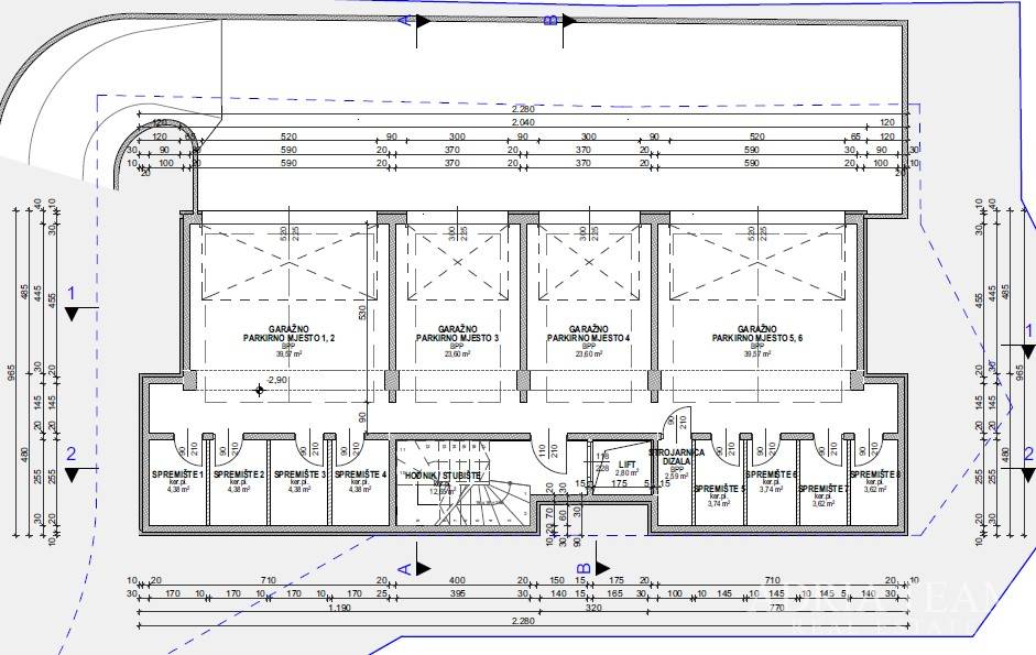 spremište/skladište: 4,38 m2 uz svaki apartman