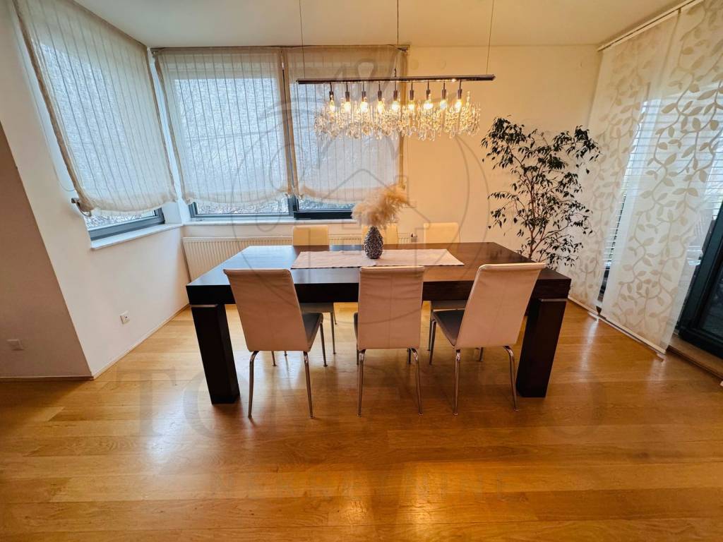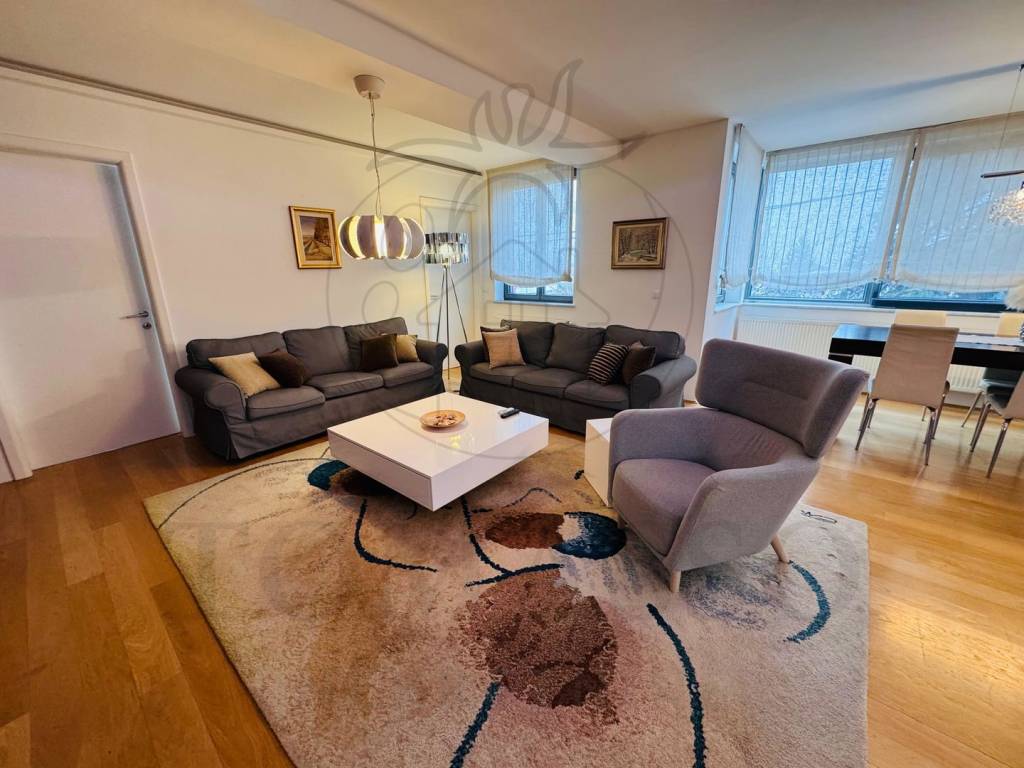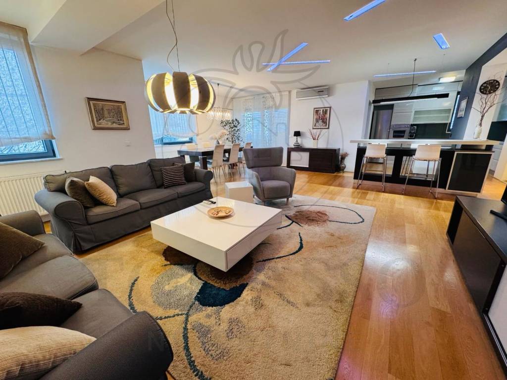 Stan se sastoji od 4 sobe, 2 kupaonice, prostranog dnevnog boravka s kuhinjom i blagovaonom i zatvorenog balkona.Master bedroom ima svoju vlastitu kupaonicu.