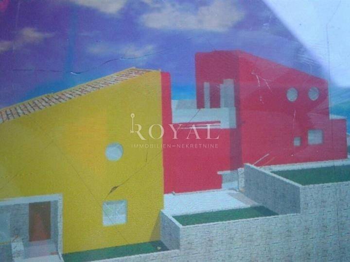 Šmrika, zemljište s projektom i započetom gradnjom, projekt za dvojnu kuću s dva dvoetažna stana od 140 m2.