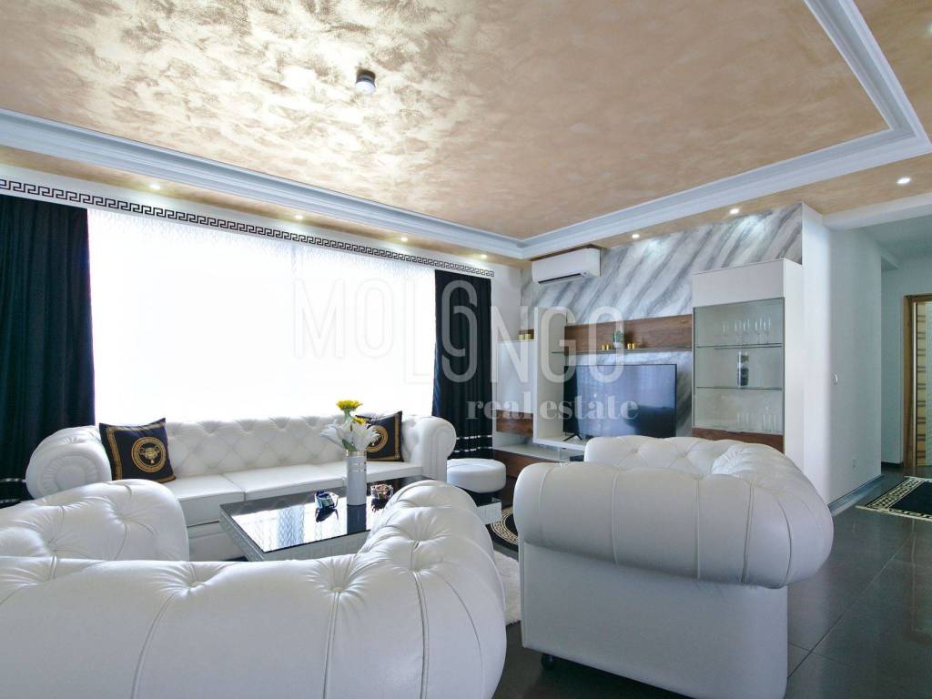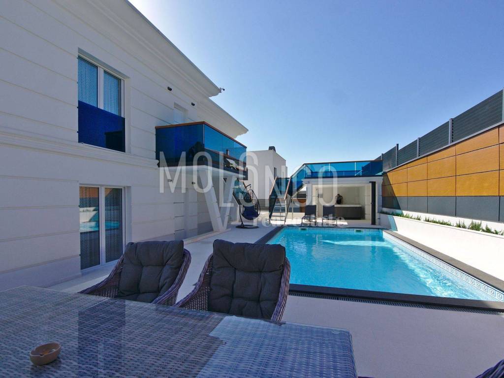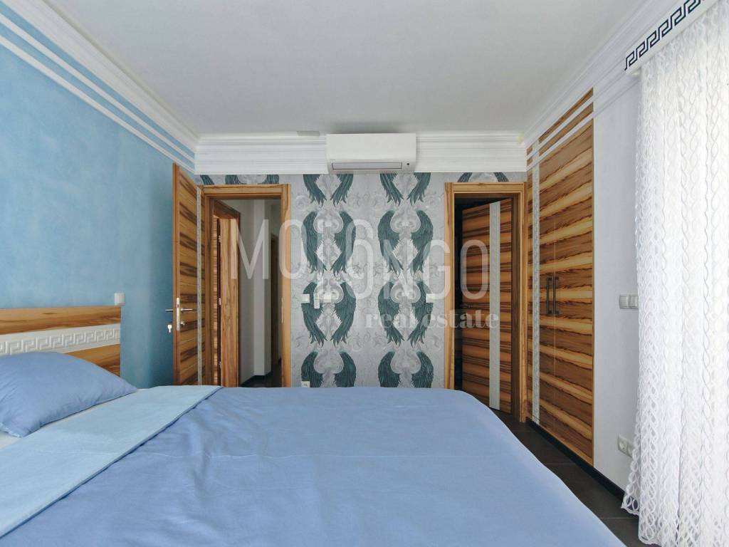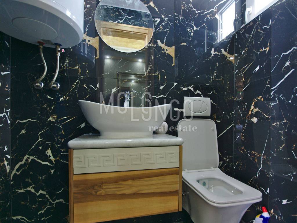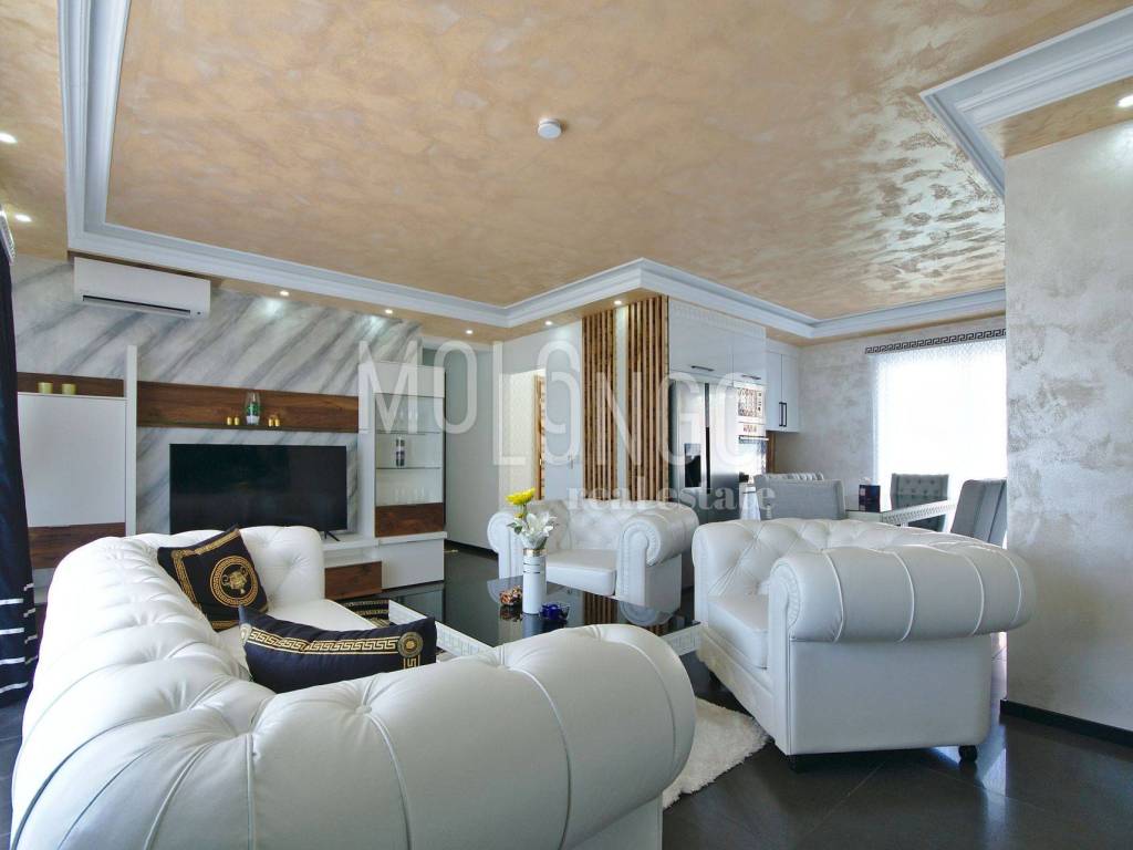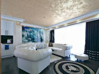 The luxuriously furnished new house is located on the Crikvenica Riviera, at a distance of 250 meters from the sea. The house has a ground floor and two floors . On the first and second floor there are two identical three-room apartments, each with an area of 125 m². Each apartment has a large south-facing terrace with a beautiful view of the sea, while each room in the apartment has its own bathroom. There are four large garages on the ground floor.