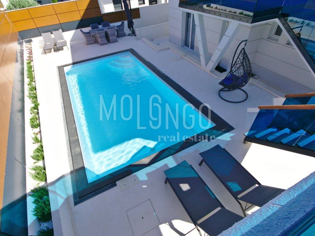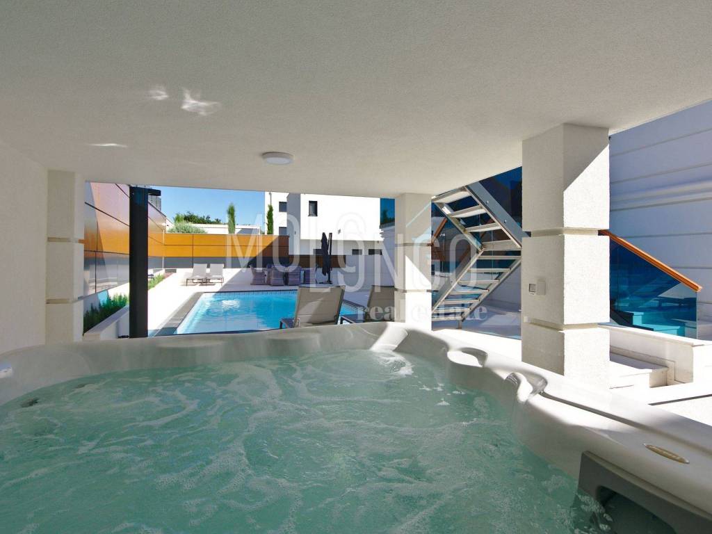 The apartments are equipped with luxury furniture that is included in the price and remains in the house at the customer's request. Within the house there is also a larger swimming pool and a jacuzzi for 6 people, and there is also a sunbathing area for relaxing in the warm sun.