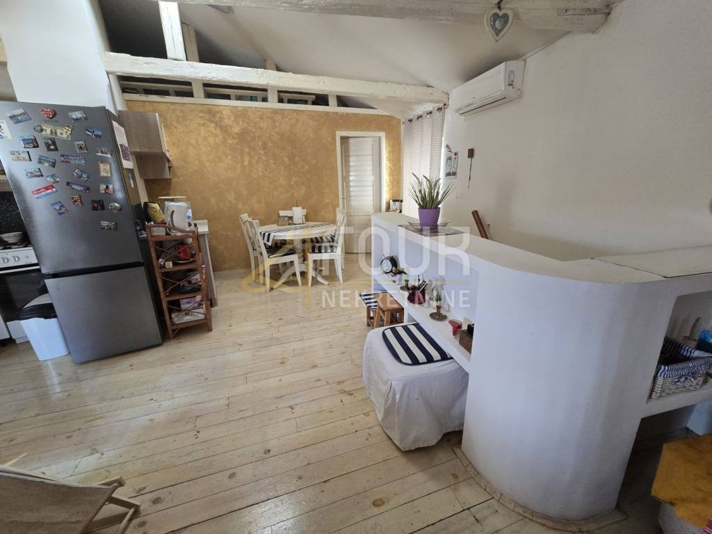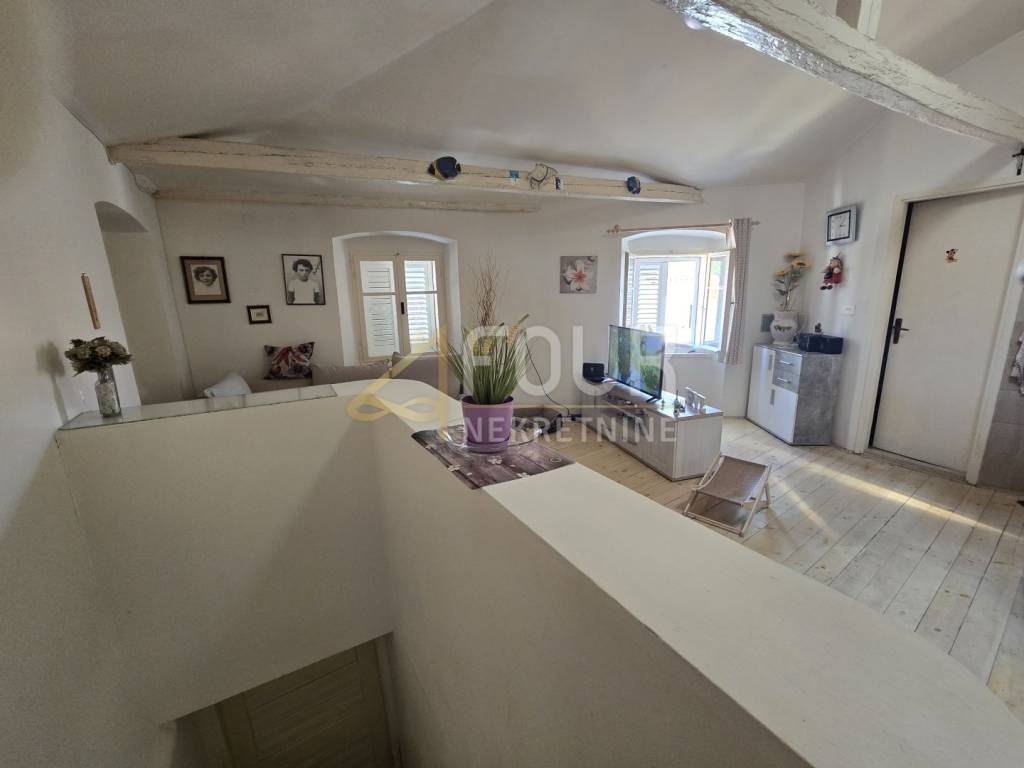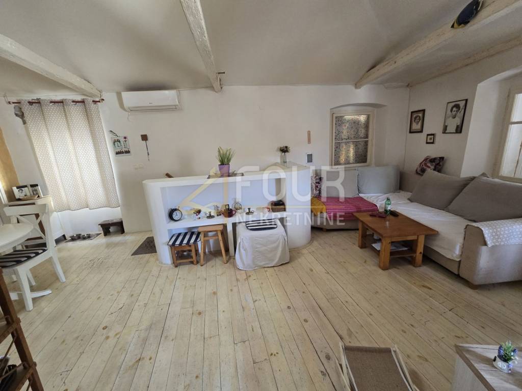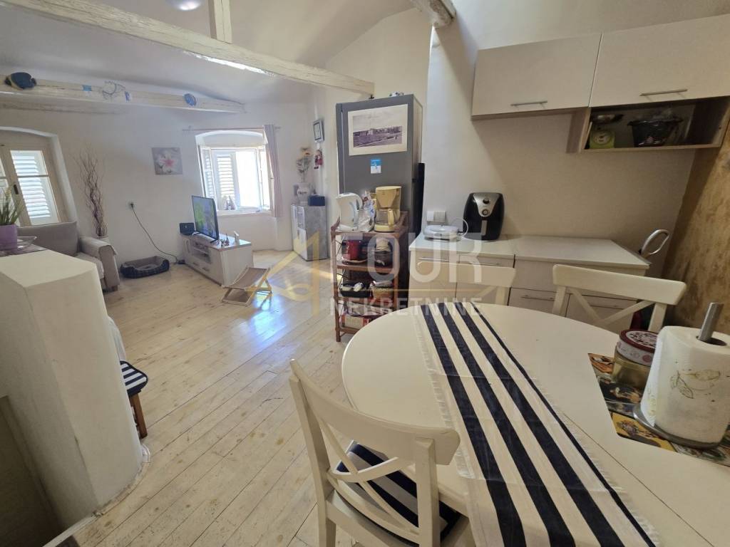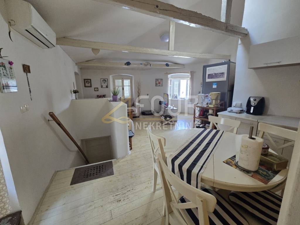 A charming apartment in the old town of Cres, just 70 meters from the waterfront and the sea. The apartment includes an attic space converted into living area, as well as part of the ground floor staircase. The living area itself is 42 m², while the total area including all parts is 54 m². It consists of one bedroom and a living room and is sold furnished. The last renovation was carried out in 2020. The apartment is equipped with air conditioning, and the carpentry is wooden.