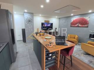 It is equipped with custom-made furniture, along with high-end Bosch household appliances and luxurious Natuzzi armchairs. The innovative heating system uses the hybrid technology of heat pumps and infrared heating, ensuring the "A" energy certificate. In addition, there is a Toshiba air conditioner that provides a pleasant climate throughout the year.