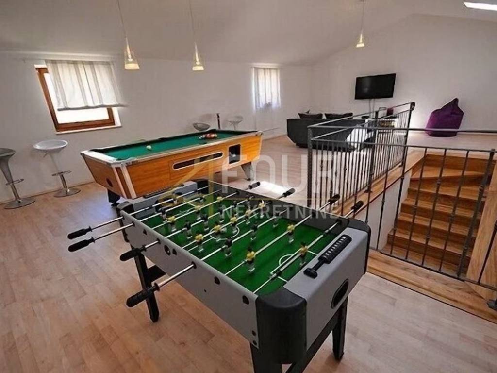 A special feature of this property is an additional furnished house with a SPA zone with a whirlpool pool for 4-5 people, an infrared sauna for two people, a shower and a toilet, and an entertainment area of ​​100 m2 that includes billiards, table tennis, table football, darts, karaoke machine, video games and a home cinema.