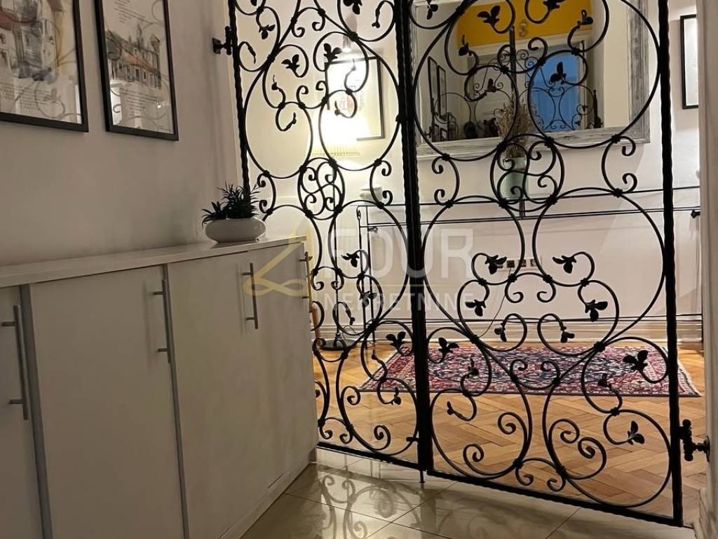 The apartment exudes character and the charm of classic Rijeka architecture – ceilings soaring to 3.7 meters create a sense of airiness and elegance, while the generous 50 m² living room offers an exceptional feeling of space. Well-preserved oak parquet floors add warmth, and the entire space has been carefully renovated with attention to detail.