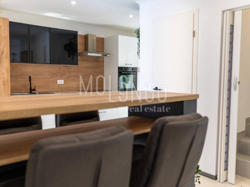 The ground floor of the house invites you with its spacious and bright spaces, including an elegant front entrance, a guest toilet, a laundry room, and a spacious living and dining room with a wonderful view of your own pool. Here you will enjoy a comfortable and elegant space, ideal for family gatherings and parties.